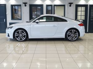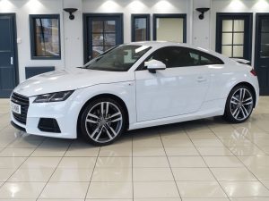 Quality Used 2015 WHITE AUDI TT Coupe 2.0 TFSI S line Coupe 3dr Petrol Manual Euro 6 (s/s) (230 ps) (first registered on 2015-07-14) for sale in Altrincham. This fantastic Coupe car is located at Dace German Car Centre, 309 Manchester Road, Stockport, Cheshire, SK4 5EA – near Altrincham and listed with price tag of £9970.00 GBP.