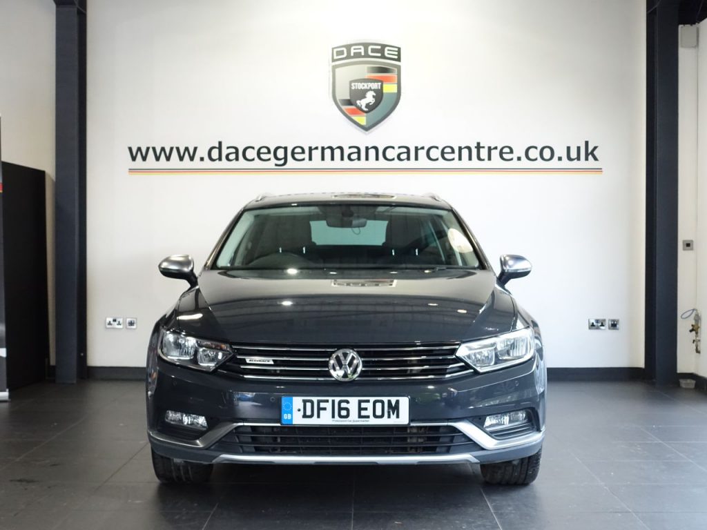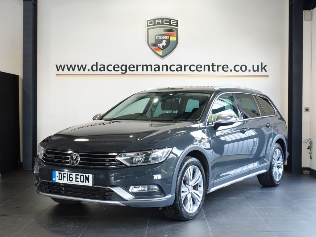 Quality Used 2016 GREY VOLKSWAGEN PASSAT Estate 2.0 TDI BlueMotion Tech Alltrack Estate 5dr Diesel DSG 4Motion Euro 6 (s/s) (190 ps) (first registered on 2016-05-23) for sale in Altrincham. This fantastic Estate car is located at Dace German Car Centre, 309 Manchester Road, Stockport, Cheshire, SK4 5EA – near Altrincham and listed with price tag of £15479.00 GBP.