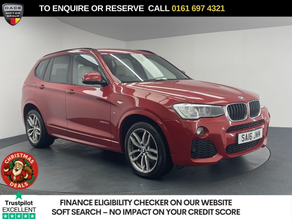 Quality Used 2016 RED BMW X3 SUV 2.0 20d M Sport SUV 5dr Diesel Auto xDrive Euro 6 (s/s) (190 ps) (first registered on 2016-03-17) for sale in Manchester. This fantastic SUV car is located at Dace Specialist Car Centre Manchester, 718 Liverpool Road, Eccles, Manchester, M30 7LW – near Radcliffe and listed with price tag of £14640.00 GBP.