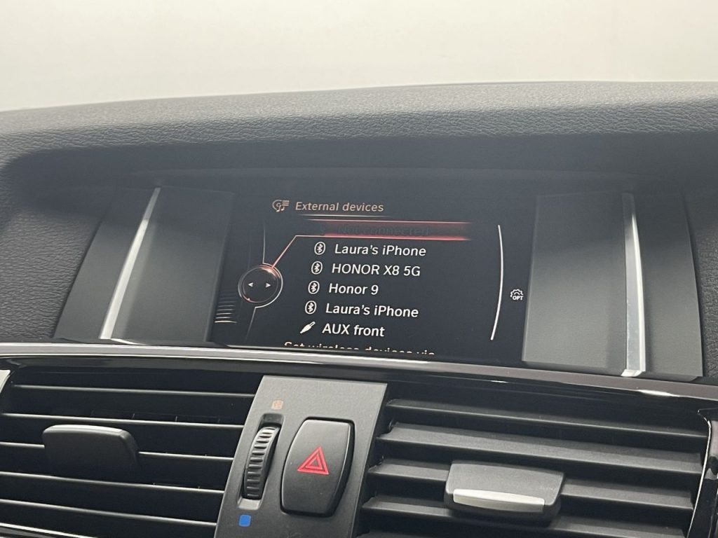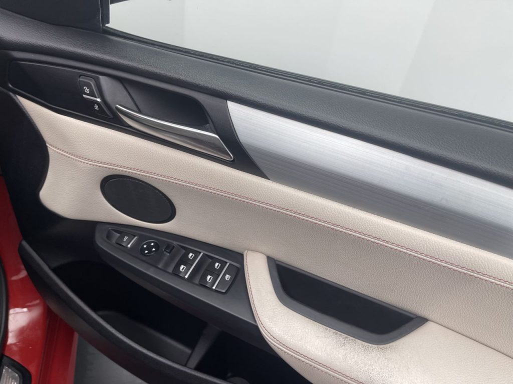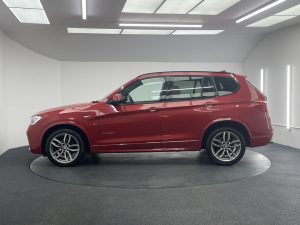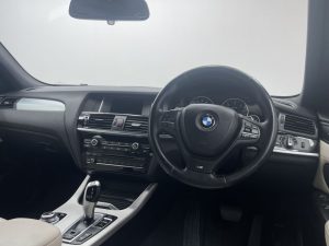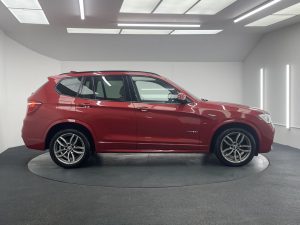 Other features: Additional Detachable Cupholder,Air Conditioning – Automatic with Two-Zone Control,Air Microfilter,Ambient Interior Lighting,Armrest – Front with Storage Compartment,Armrest – Rear Centre,Automatically Dimming Rear View Mirror,Courtesy Lights – Front and Rear with Soft On-Off Dimming,Door Panels – Plastic – Beige,Door Sill Finishers – M Designation,Embellishers for Instrument Panel – Black High-Gloss,Floor Covering – Tufted Velour – Dark Beige,Floor Mats – High-Pile – Beige Dark,Floor Mats – Velour,Footwell Lights – Front,Glove Compartment – Illuminated,Glove-Box Lid – Plastic Grained – Beige,Grab Handles and Hooks – Beige,Grab Handles and Hooks – Sky Grey,Grab Handles with Coat Hooks,Head Restraints – Front and Rear,Head Restraints – Height and Angle,Headlining – Anthracite,Headrests – Active Front,Instrument Panel – Lower Section – Plastic Grained – Beige,Interior Trim – A Pillar – Upper Section – Finished Fabric – Beige,Interior Trim – B Pillar – Lower Section – Plastic – Beige,Interior Trim – B Pillar – U 19in Alloy Wheels – Light M Double-Spoke Style 622M,BMW Mobility System,Door Handles – Body Colour,Door Mirrors – Body Coloured,Door Mirrors – Drivers Aspheric,Door Mirrors – Electric and Heated,Door Mirrors – Integrated Indicators – LED,Electric Windows – Front and Rear with Open-Close Fingertip Control,Exhaust Tailpipe – Single Oval with Chrome Finisher,Exterior Trim – High-Gloss Shadowline,Heated Windscreen Washer Jets,Indicator Lenses – Clear,Kidney Grille – Chrome with Black Vertical Slats,Locking Wheel Bolts,M Aerodynamic Bodystyling,M Sport Package,Model Designation – X3 on Tailgate and Drive designation on Left and Right Front Side Panels,Roof Rails – High-Gloss Shadowline,Run Flat Tyres ABS – Anti Lock Braking System,Airbags – Driver,Airbags – Driver and Front Passenger Side,Airbags – Front ITS Head,Airbags – Passenger,Airbags – Passenger Deactivation,Airbags – Rear ITS Head,Alarm System Thatcham 1 with Remote Control,Anti Roll Bars – Front and Rear,ASC – Automatic Stability Control,Brake Drying,Brake Fade Compensation,Brake Force Display,Brake Pre-Tensioning,CBC – Cornering Brake Control,Central Locking – Doors Boot Fuel Cap via Remote Key,Child Proof Locking System – Rear Doors,Child Seat ISOFIX Attachment – Rear,Crash Sensor – Activating Central Locking-Hazard Warning Lights-Fuel Cut Off,Cruise Control with Brake Function,DBC – Dynamic Brake Control,Drive Performance Control – ECO PRO – Comfort – Sport – Sport Plus,DSC – Dynamic Stability Control – Stabilises the Vehicle in Extreme Situations – Controls Traction,DTC – Dynamic Traction Control,EBD – Electronic Brake-Force Distribution,Electro Mechanical Parking Brake,Engine Immobiliser,First Aid Kit,HDC – Hill Descent Control,Hill Start As Daytime Running Lights,Enhanced Bluetooth Telephone Preparation with USB Audio Interface,Follow Me Home Headlight Function,Front Fog Lights,Halogen Headlights,Headlights – Automatic Activation,Headlights – Height Adjustment,Headlights – Washer System,High Level Third Brake Light,M Sport Suspension,Melbourne Red,Nevada Leather – Ivory White Application and Stamping Black with Black Interior,Power Steering – Electric,Remote Services,Reversing Assist Camera,Steering Wheel – Gearshift Paddles,Sun Protection Glazing,Xenon Headlights