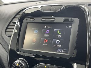 Other features: Climate Control with Air Quality Regulator and One Touch Demist Function,Closeable Storage – Dashboard – 1.6L,Door Armrest – Black Gloss,Front Door Storage Compartment – 1.5 ltr,Headrests – Front Height Adjustable – SRP – System for Restraint and Protection,Headrests – Rear x3,Heating System with Pollen Filter,Interior Touch Pack – Blue – Miami,Interior Touch Pack – Chrome Gloss,Leather Steering Wheel and Gear Knob,Rear Door Storage Compartment – 0.5L,Removable Storage between Drivers and Passenger Seat,Reversible Boot Floor,Seats – 60-40 Split Folding Rear,Seats – Drivers Height Adjustment,Seats – Shell-Shaped,Service Plan – 3yrs – 30000miles,Service Plan – 4yrs – 40000miles,Small Storage Area by Gear Stick for Phone-Keys,Split-Level Boot Floor,Steering Wheel – Height and Reach Adjustable,Storage – Front Glovebox,Storage Between Front Seats,Storage Nets on Rear of Front Seats,Storage Space for 1 Cup and Miscellaneous Items near Handbrake,Windscreen Wipers – Variable Speed 17in Alloy Wheels – Explore Black,17in Alloy Wheels – Explore Ivory,Bumpers – Body Coloured,Chrome Exterior Gloss Pack,Colour Pack – Miami,Diamond Black Exterior Gloss Pack – Black Detailing,Door Handles – Body Coloured – Front,Door Mirrors – Electrically Operated – Heated – Folding,Door Mirrors – Roof Coloured Housings,Electric Windows – Front with Anti Pinch and One Touch Control,Electric Windows – Rear,Extra Tinted Windows – Rear and Tailgate,Headlights – Chrome Surround,Lower Door Protector – Black Grain,Painted Roof – Diamond Black,Renault Diamond Logo on Front Face – Rear Face – Wheels,Tyre Inflation Kit ABS with EBA – Emergency Brake Assist,Airbags – Front Passenger Deactivation,Body Coloured Parking Sensors – Rear,Cruise Control with Speed Limiter,Deadlocking,Driver and Passenger Front – Side Airbags,Driver Lateral Head-Thorax Airbag,EBD – Electronic Brake Distribution,Eco Mode,ESC – Electronic Stability Control,Front and Rear Seat Belt Undone Warning Audible Alert,Handsfree Keycard with Push Button Start-Stop Function,HSA – Hill Start Assist,ISOFIX Child Seat Fixing Points on Front Passenger and Rear Outermost Seats,RAID – Renault Anti Intruder Device,Rear Wiper,Remote Central Locking with Thatcham Approved Immobiliser – Thatcham Cat 2,Safety Lock – Rear Doors,Traction Control,Trip Computer,Tyre Pressure Warning Light Automatic Headlights and Rain Sensitive Front Wipers,Daytime Running Lights – LED,Fog Lights with Cornering Function,TomTom Live Services and R-Link Connectivity,Variable Power Assisted Steering – Electrical