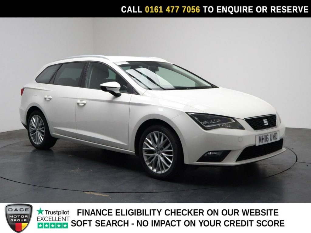 Quality Used 2016 WHITE SEAT LEON Estate 1.2 TSI SE Dynamic Technology Sport Tourer 5dr Petrol Manual Euro 6 (s/s) (110 ps) (first registered on 2016-08-15) for sale in Stockport. This fantastic Estate car is located at Dace Car Supermarket, Greg Street, Reddish, Stockport, Cheshire, SK5 7BS and listed with price tag of £7890.00 GBP.
