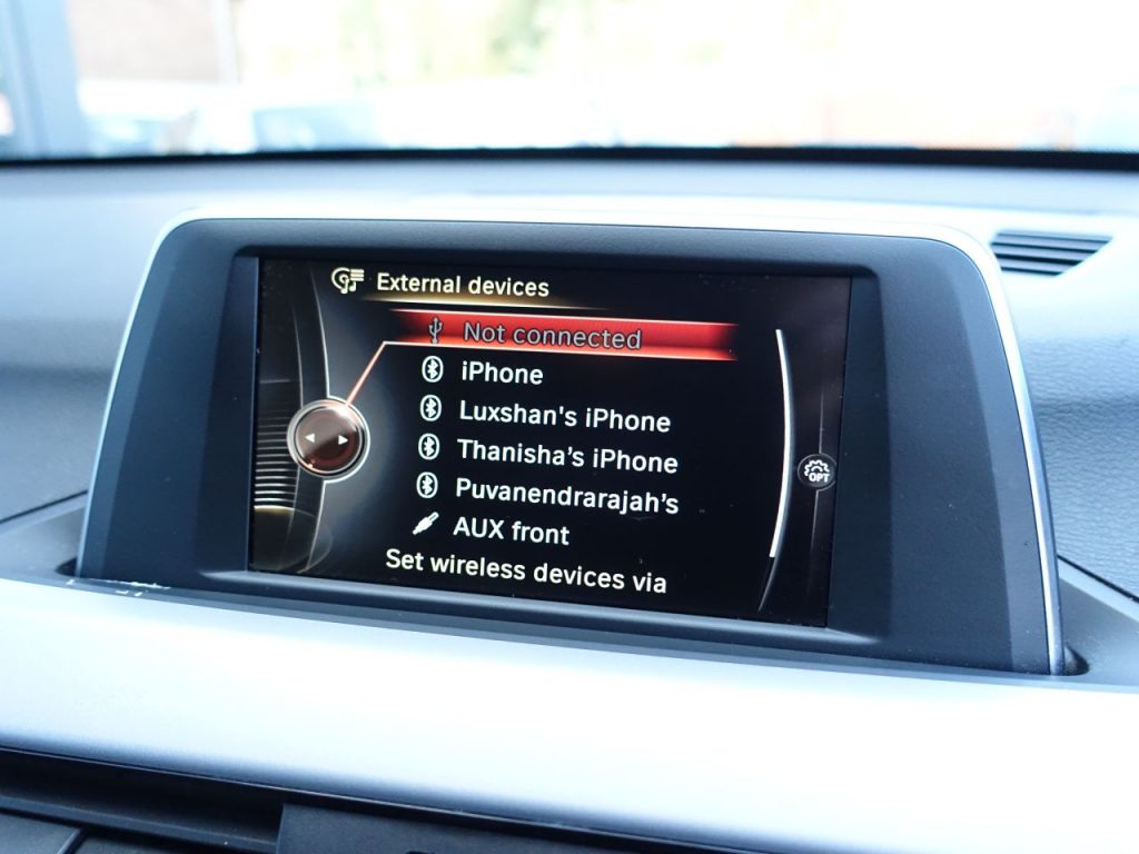 Other features: 40-20-40 Electrically Split Folding Rear Seat with 60-40 Manual Sliding Bench,Air Conditioning Automatic with Two-Zone Control,Armrest Front – Free Standing and can be Fixed in Five Positions,Automatic Tailgate,Central Locking Switch – Doors – Fuel Filler Cap – Luggage Compartment,Cupholders – Two,Door Sill Finishers – BMW Designation – Front – Black,Extended Storage,Floor Mats – Velour,Glove Box with Light,Grab Handles – in Roof Lining x4,Instrument Cluster,Interior Lighting – Front Centre Over Interior Mirror and Rear Centre,Interior Trim – Oxide Silver with High Gloss Black Finisher,Luggage Compartment – Light,Luggage Compartment Access via Handle in Number Plate Recess,Multifunction Controls for Steering Wheel,Personal Profile – Extended,Rain Sensor with Automatic Headlight Activation,Rear Fog Light,Rear Seat Headrests – Three,Seats – Sliding Rear Bench,Side Armrests – Front and Rear Integrated into Door Trim,Sport Multi-Function Leather Steering Wheel – Three Spoke,Standard Seat for Driver and Passenger 17in Alloy Wheels – Light Double Spoke Style 564,Direction Indicator Lights – Clear Lenses,Direction Indicator Side Lights Integrated in Exterior Mirrors,Electric Windows – Front and Rear with Open-Close Fingertip Control – Anti-Trap Facility and Comfort Closing Function,Exhaust Tailpipe – Chrome – Single Round 75mm – Left,Exterior Parts in Body Colour,Heat Protection Glazing with Green Tint,Heated Exterior Mirrors,Heated Windscreen Washer Jets,Kidney Grille – Chrome with 14 Black Vertical Slats,Locking Wheel Bolts,Mobility Tyre Sealing System,Model Designation,Reversing Light in Rear Light Clusters,Roof Rails – Black,Shark Fin,Tyres – Reduced Rolling Resistance,Welcome Lighting Active Guard,Airbags,Alarm System – Thatcham 1 with Remote Control and Engine Immobiliser,Battery Safety Cut Off,Brake Pad Wear Indicator,Bumper System Front and Rear – Replaceable Deformation Elements for Impacts Up to 9mph,Child Proof Locking System – Rear Doors,Child Seat ISOFIX Attachment For The Two Outer Rear Seats And Front Passenger Seat,Condition Based Service,Crash Sensor – Activating Central Locking Release – Hazard Warning Lights – Battery Safety Cut Off – Interior Lighting,Cruise Control with Brake Function,Drive Performance Control with ECO PRO – Comfort and Sport Modes,DSC – Dynamic Stability Control Plus,Dynamic Brake Lights,EDLC – Electronic Differential Lock Control,Electrically Operated Handbrake – Parking Brake,First Aid Kit and Warning Triangle,Front and Rear Underbody Protection in Silver Matt,Incorrect Fuelling Protection System,OBC – On-Board Computer,Optimum Shift Indicator,PDC – Park Distance Control – Rear,Performance Control,Rear Window Wiper with Wash-Wipe System,Remote Control In 17in Alloy Wheels – Light Double Spoke Style – 385,Black Sapphire,Check Control Warning System for Monitoring of Lights and Door-Luggage Compartment Open Warning,Dynamic Drive,EPS – Electric Power Steering,Front Fog Lights,Grid Cloth – Anthracite,Halogen Headlights,High Level Third Brake Light,Launch Control,Lights-On Warning by Audio Warning Signal When Ignition is Switched Off,Model Designation Deletion,Servotronic Steering,Suspension