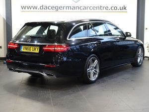 Quality Used 2017 BLACK MERCEDES-BENZ E-CLASS Estate 2.0 E220d AMG Line Estate 5dr Diesel G-Tronic+ Euro 6 (s/s) (194 ps) (first registered on 2017-02-25) for sale in Altrincham. This fantastic Estate car is located at Dace German Car Centre, 309 Manchester Road, Stockport, Cheshire, SK4 5EA – near Altrincham and listed with price tag of £10970.00 GBP.