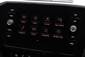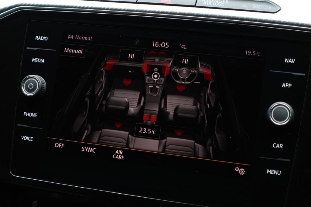 Other features: 3 Rear Head Restraints – Height Adjustable,Aluminium Trim On Upper and Lower Air Vents Extending Across Cockpit,Ambient Lighting,Automatic Dimming Interior Rear View Mirror,Brushed Aluminium Interior Door Handles,Carpet Mats – Front and Rear,Climate Control,Cup Holders – Front x2,Driver Personalisation Profile,Drivers and Passengers Safety Optimised Head Restraints,Front Centre Armrest – Longitudinally Adjustable with Storage Compartment and Two Rear Air Vents,Glovebox – Cooled and Lockable,Heated Front Seats,Interior LED Lighting,Leather Trimmed Three-Spoke Multifunction Steering Wheel with Aluminium Inserts and R-Line Logo with Paddle Shift,LED Luggage Compartment Lights x2 – Left and Right,Load Lashing Points x4 in Luggage Compartment,Load Through Provision with Two Cup Holders when Folded Down,Luggage Compartment Bag Hooks x 2 – Left and Right,Luggage Compartment Cover – Removable,Passengers Seat with 6-Way Adjustment,Piano Black Decorative Inserts in Centre Console,Press and Drive – Keyless Start,Rain Se 19in Alloy Wheels – Montevideo Black,Body Coloured Bumpers and Door Handles,Body-Coloured Top and Matt Black Lower Door Mirrors with Integrated Indicators,Chrome Effect Trapezoid Dummy Exhaust Tailpipe Surrounds – Left and Right,Chrome Side Window Surrounds,Chrome Trim on Lower Bumper – Front and Rear,Chrome Trim on Lower Doors – Front and Rear,Chrome Trim on Radiator Grille Louvres,Door Mirrors – Electrically Adjustable-Heated and Folding,Electric Windows – Front and Rear,Frameless Side Windows with One-Touch and Convenience Opening and Closing Functions,Full Size Alloy Spare Wheel and Tyre – Tool Kit and Jack,Heated Rear Windscreen,Heated Windscreen Washer Jets,R-Line Logo on Door Sill Protectors,R-Line Styling Pack,Rear Tinted Glass from B Pillar Backwards,Unique R-Line Badging on Front Panels 3 Rear Three-Point Seat Belts with Tensioners on Outer Seats,ABS – Anti-Lock Braking System,Active Bonnet,Adaptive Cruise Control – ACC with Predictive Cruise Control,Airbags,Alarm with Interior Protection,Analogue Clock in Dashboard,Driver Alert System – Fatigue Detection,Driving Profile Selection,Electronic Engine Immobiliser,Electronic Parking Brake with Auto Hold Function,Emergency Release Function in Rear Tailgate,ESC – Electronic Stability Control,Height Adjustable Front Three-Point Seat Belts with Tensioners,Isofix Child Seat Preparation – Easy-Fit – For 2 Outer Rear Seats,Lane Assist,LED Rear Number Plate Lights,Parking Sensors – Front and Rear,Pedestrian Monitoring,Proactive Occupant Protection,Remote Central Locking with 2 Remote Folding Keys,Speedo and Rev Counter – Electronic Odometer – Trip – Service Interval Display and Fuel Gauge,Two-Tone Horn,Tyre Pressure Loss Indicator,Warning Light for Low Washer Fluid,Warning Notification on Active Info Display For Doors and Tailgate if Open,Warning Sound Automatic Coming-Leaving Home Lighting Function,Deep Black,Dusk Sensor – Automatic Driving Lights,High Level 3rd Brake Light – LED,LED Self-Levelling Headlights,LED Tinted Rear Light Clusters with Dynamic Indicators,Nappa Leather-Carbon Optic – Black,Progressive Steering,Warning Lights On Sound