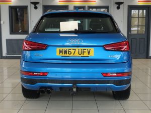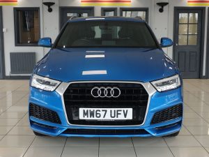 Quality Used 2017 BLUE AUDI Q3 SUV 1.4 TFSI CoD S line Edition SUV 5dr Petrol S Tronic Euro 6 (s/s) (150 ps) (first registered on 2017-12-18) for sale in Altrincham. This fantastic SUV car is located at Dace German Car Centre, 309 Manchester Road, Stockport, Cheshire, SK4 5EA – near Altrincham and listed with price tag of £17440.00 GBP.