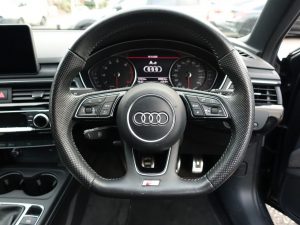 Other features: 4-Way Electric Lumbar Support,Auto-Dimming Rear-View Mirror,Cloth Headlining in Black,Deluxe 3-Zone Electronic Climate Control,Electric Boot Lid Release,Extended LED Interior Lighting Package – Multi-Coloured,Flat Bottomed 3-Spoke Leather High Multi-Function Steering Wheel,Front Centre Armrest,Gear Lever Knob in Black Perforated Leather,Heated Front Seats,Illuminated Door Sill Trims with S Logo,Inlays – Piano Finish – Black,Keyless Go,LED Interior Light Package,Manual Height Adjustment for Front Seats,Pedals and Footrest – Stainless Steel,Split-Folding Rear Seat Bench in 3 Parts – 40-20-40 with Rear Centre Armrest,Sun Visors – with Vanity Mirror,Tool Kit and Car Jack 19in Alloy Wheels – 5-Arm Rotor Matt Titanium Look – Diamond Cut,Anti Theft Locking Wheel Bolts,Black Styling Package,Chrome-Plated Trims for Exhaust System,Door Handles – Body Coloured,Door Mirrors – Electrically Adjustable and Heated with Built-in LED Indicators,Electric Windows – Front and Rear,High Gloss Package,Privacy Glass and Front Acoustic Glazing,Rear Diffuser in Twilight Grey Matt,Rear Grille – Black Grained,S Line Badges on Front Wings,S line Front and Rear Bumpers and Side Skirts,Space Saver Spare Wheel,Windscreen with Acoustic Glazing 6-Airbag System,Anti-Theft Alarm,Audi Drive Select,Cruise Control with Speed Limiter,ESC – Electronic Stabilisation Control inc ABS – ASR and EDL,First Aid Kit and Warning Triangle,ISOFIX Child Seat Mounting and Top Tether,Multi Collision Brake Assist,Parking System Plus,Pop-Up Bonnet for Pedestrian Protection,Pre-Sense City,Remote Central Locking,Seat Belt Monitoring,Tyre Pressure Warning Light,Voice Control Audi Exclusive,Electromechanical Power Steering,LED Headlights with LED Rear Lights and Dynamic Rear Indicators,Light and Rain Sensor,Monsoon Grey,Sport Suspension