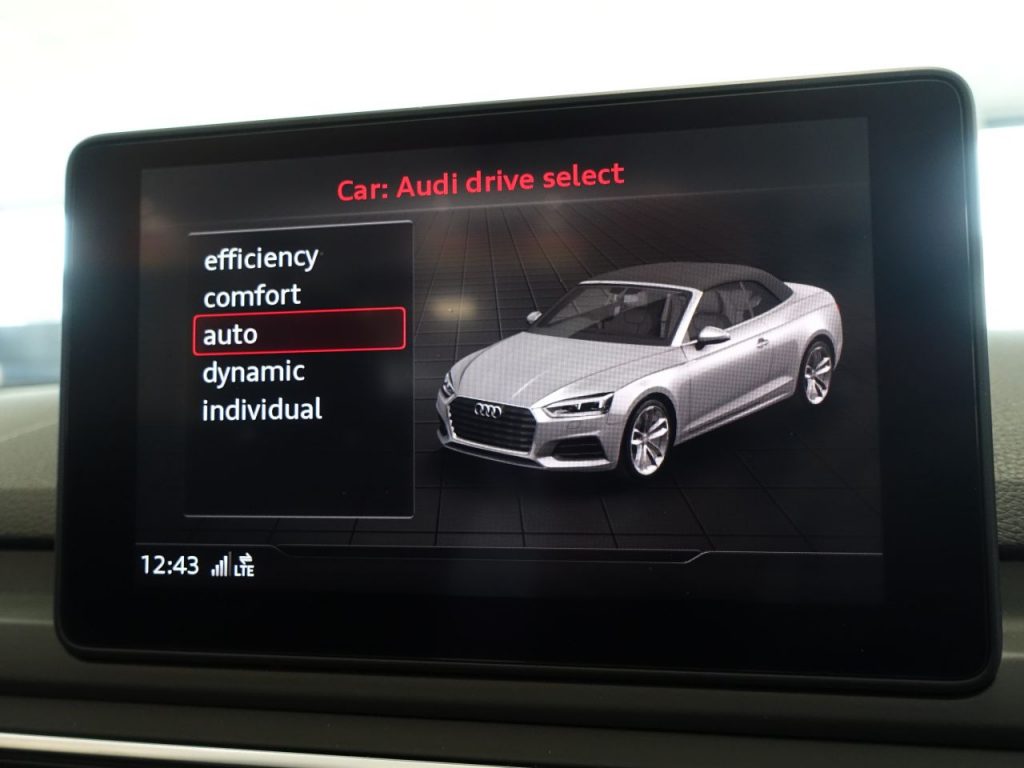 VERY NICELY CARED FOR A5 CABRIOLET – 2 OWNERS FROM NEW AND COMES WITH A FULL SERVICE HISTORY + SATELLITE NAVIGATION + BLUETOOTH CONNECTIVITY INCLUDING MEDIA STREAMING + THREE-ZONE CLIMATE CONTROL + CRUISE CONTROL + FRONT AND REAR PARKING SENSORS + DAB DIGITAL RADIO + IN CAR ENTERTAINMENT + MULTI FUNCTION STEERING WHEEL + PIANO BLACK INLAYS + AUTOMATIC STOP / START FUNCTION + AUTOMATIC LIGHTS + AUTOMATIC WIPERS + POWER FOLDING ELECTRIC WINDOWS + ELECTRIC HEATED MIRRORS + AIR CONDITIONING + 18 INC
