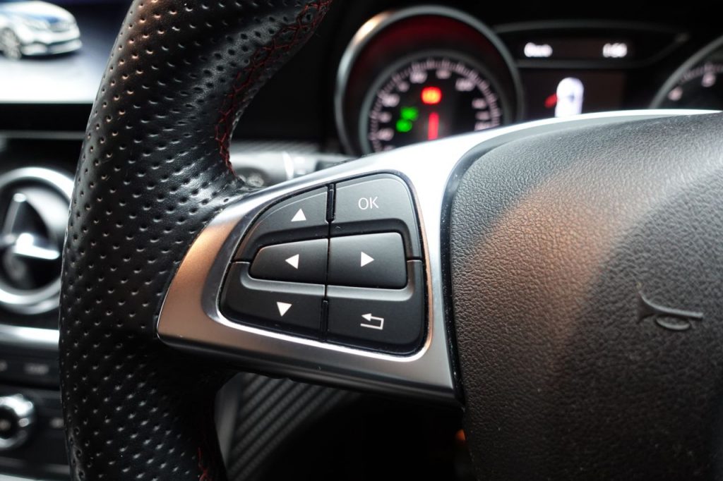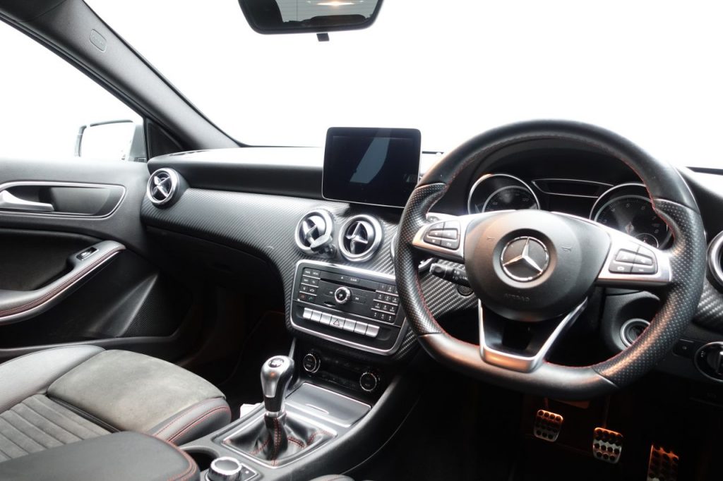 Other features: Air Vents with Surround and Cruciform Nozzle in Silver Chrome,Ambient Lighting in Headrests and Interior Door Handles,Brushed Stainless Steel Sports Pedals with Rubber Studs,Centre Armrest – Front with Stowage,Cup Holder – Double – Front,Direction Indicators with Lane-Changer Function,Floor Mats – Red Stitched Edging – AMG Lettering,Footwell Lighting – Front and Rear,Four-way Lumbar Support for Driver and Front Passenger,Glove Compartment – Illuminated,Illuminated Front Door Sills with Mercedes-Benz Lettering,Illumination – Storage Compartment,Instrument Cluster with Four Analogue Dials and Needles Suspended in Six-O-Clock Position,KEYLESS-GO Starting Function,Lighting in Stowage Compartment and Vanity Mirrors,Luggage Compartment Cover,Rain-Sensing Windscreen Wipers with Two Sensitivity Settings,Reading Lights and Console Light in Front and Rear,Rear Seats – Split Folding 1-3 2-3,Rear View Mirror – Additional Lighting,Roof Lining – Black,Seat Comfort Package,Seats – Front Cushion Length Adjustment,Seats – Fro 18in Alloy Wheels – AMG 5-Twin-Spoke Design – Painted in Titanium Grey with a High Sheen Finish,18in Alloy Wheels – AMG Multi-Spoke Design,AMG Bodystyling – Front and Rear Apron and Side Skirts,Beltline Strips – Chrome,Bodystyling – Side Skirts – Body-Coloured,Brake Calipers – Mercedes-Benz Lettering on Front,Bumpers – Body Coloured,Door Handles – Body Coloured,Door Mirrors – Electrically Adjustable and Heated with Integrated LED Indicators,Door Mirrors – Mirror Housing in Body-colour,Electric Windows – 4,Exhaust System – Twin Trapezoidal Tailpipes in Polished Stainless Steel,Glass – Rear Windscreen – Heated with Timer Control,Night Package,Panoramic Glass Sunroof,Privacy Glass,Radiator Grille – Diamond with Pins in Chrome and Silver Louvre with Chrome Insert,Rear Fog Light,TIREFIT Tyre-Sealant Kit ABS – Anti-Lock Braking System with BAS – Brake Assist,Active Bonnet – Pedestrian Safety Measure which Detects an Impact and Raises Bonnet by 65mm,Active Braking Assist,Adaptive Brake Assist with Hold Function and Hill Start Assist,Adaptive Brake Lights,Airbags – Dual Stage – Driver and Front Passenger,Airbags – Head and Sidebags – Driver and Front Passenger,Airbags – Windowbags for Driver and Front Passenger,Alarm System with Immobiliser and Interior Protection – Thatcham Category 1,ATTENTION Assist,Automatic Child Seat Recognition Sensor,Brake-Pad Wear Warning Indicator,Childproof Locks – Manually Operated for Rear Doors and Electrically Operated for Rear Power Windows,Controller on Centre Console with Chrome Surround,Crash-Responsive Emergency Lighting,Cruise Control with Limiter,Drivers Kneebag,Dynamic Select with a Choice of Driving Modes – ECO-Comfort-Sport and Individual,Electric Parking Brake,Electronic Key – Chrome Surround,ESP – Electronic Stability Programme with ASR – Acceleration Skid Control,ESP Artico Leather-Dinamica Microfibre – Black with Red Contrast Stitching,Canyon Beige,Cavansite Blue,Cirrus White,Cosmos Black,DAB Digital Radio Tuner,Elbaite Green,Garmin Map Pilot Navigation System,Halogen Headlights with Integrated Daytime Running Lights,Headlamp Assist – Automatic Headlamp Activation,High Level Third Brake Light – LED,Jupiter Red,Mountain Grey,Orient Bronze,Parking Pilot,Part LED Tail Lights,Polar Silver,Power Steering – Sports Direct Steer System with Speed Sensitive Servo Assistance,Remote Online Services,Selective Damping,Surround Sound System – Harman Kardon Logic 7 with Dolby Digital 5-1 and DTS,Suspension – Comfort – Lowered by 20mm Front and 15mm Rear