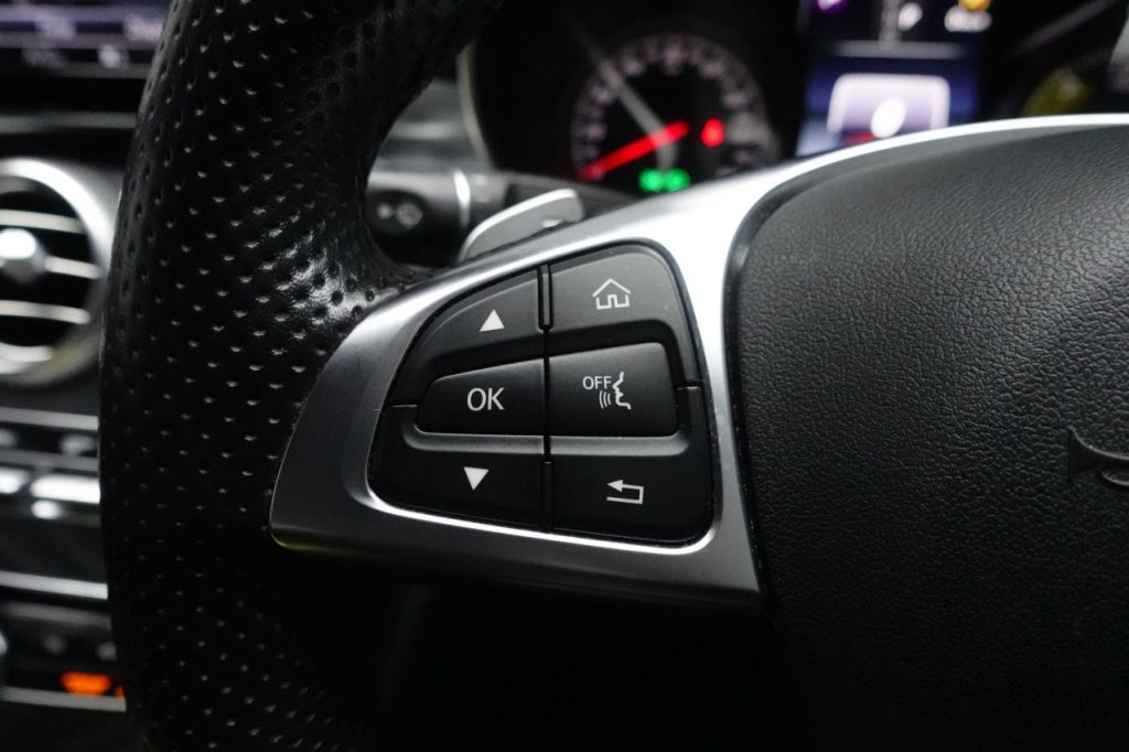 Other features: Automatically Dimming Rear View Mirror and Drivers Door Mirror,Brushed Stainless Steel Sports Pedals with Rubber Studs,Floor Mats – Black with AMG Lettering,Front Centre Armrest with Stowage Compartment,Front Seats – Electrical Height and Backrest Adjustment and Four-Way Lumbar Adjustment,Heated Front Seats,Illuminated Glove Compartment,Interior Lighting Package,Rain Sensing Windscreen Wipers,Remote Boot Release,Seat Belts – Black,Seat Comfort Package,Seats – AMG Sports,Seats – Rear Split Folding 40-20-40,Steering Column – Manually Adjustable for Height and Reach,Steering Wheel – 3-Spoke Multi-Function AMG in Black Leather with Flattened Bottom Section and Chrome Inserts and Perforated Leather in Grip Area,Steering Wheel – Gear Shift Paddles,Steering Wheel – Multi-Function with Audio and Onboard Settings Control,Stowage – Double Cup Holder in Centre Console,Stowage Package,Sun Visors with Illuminated Vanity Mirrors,THERMATIC – Automatic Climate Control – Two-Zone,Trim – Black Ash Wood 18in Alloy Wheels – AMG 5 Spoke Design – Painted Titanium Grey,AMG Bodystyling,Brake Calipers with Mercedes-Benz Lettering,Electric Windows – 4 – With One-Touch Opening and Closing – including Obstruction Sensors,Exhaust System – Visible Twin-Pipe Integrated into the Bumper,Mirror Package,Radiator Grille with Integrated Star – Two Louvres in Matt Iridium Silver with Chrome Trim,Tinted Glass All Round – Green,TIREFIT with Tyre Inflation Compressor,Top Surround of Side Windows in Polished Aluminium ABS – Anti-Lock Braking System,Active Bonnet – Pedestrian Safety which Detects an Impact and Raises Bonnet,Active Parking Assist including PARKTRONIC,Adaptive Brake Assist with Hold Function and Brake Drying Function,Adaptive Brake Lamps,Airbags – Dual Stage – Driver and Front Passenger,Alarm System with Immobiliser and Interior Protection,ATTENTION Assist,Automatic Child Seat Recognition Sensor,Central Locking with Interior Switch – Automatic Locking and Crash Sensor with Emergency Opening Function,Childproof Locks – Manually Operated for Rear Doors and Electrically Operated for Rear Power Windows,Collision Prevention Assist Plus,Dynamic Select with a Choice of Driving Modes – Comfort – ECO – Sport – Sport Plus – Individual,Electric Parking Brake,Electronic Key – Chrome Surround,ESP – Electronic Stability Programme,First Aid Kit and Warning Triangle,ISOFIX Child Seat Attachment Points with Top Tether in Rear,Outside Temperature Display,Reversing Camera,Service Indicator ASSYST,SPEEDTRONIC Cruise Control and Agility Control – Sports Suspension – Lowered by 15mm,Artico Artificial Leather – Black,Full LED Tail Lights,Headlamps – LED High Performance with Integrated LED Daytime Running Lights,Selenite Grey,Sports Direct-Steer System with Speed Sensitive Steering