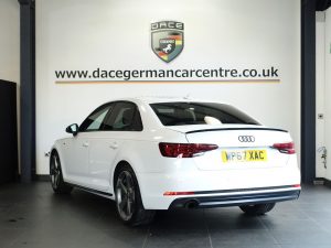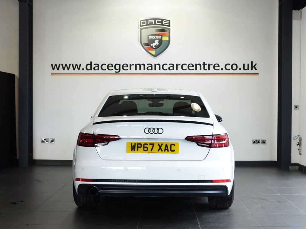 Quality Used 2017 WHITE AUDI A4 Saloon 1.4 TFSI Black Edition Saloon 4dr Petrol Manual Euro 6 (s/s) (150 ps) (first registered on 2017-12-18) for sale in Altrincham. This fantastic Saloon car is located at Dace German Car Centre, 309 Manchester Road, Stockport, Cheshire, SK4 5EA – near Altrincham and listed with price tag of £10970.00 GBP.