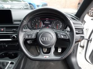 Other features: 4-Way Electric Lumbar Support,Auto-Dimming Rear-View Mirror,Cloth Headlining in Black,Deluxe 3-Zone Electronic Climate Control,Electric Boot Lid Release,Flat Bottomed 3-Spoke Leather High Multi-Function Steering Wheel,Front Centre Armrest,Gear Lever Knob in Black Perforated Leather,Heated Front Seats,Illuminated Door Sill Trims with S Logo,Inlays – Piano Finish – Black,Keyless Go,LED Interior Light Package,Manual Height Adjustment for Front Seats,Pedals and Footrest – Stainless Steel,Split-Folding Rear Seat Bench in 3 Parts – 40-20-40 with Rear Centre Armrest,Sun Visors – with Vanity Mirror,Tool Kit and Car Jack 19in Alloy Wheels – 5-Arm Rotor Matt Titanium Look – Diamond Cut,Anti Theft Locking Wheel Bolts,Black Styling Package,Chrome-Plated Trims for Exhaust System,Door Handles – Body Coloured,Door Mirrors – Electrically Adjustable and Heated with Built-in LED Indicators,Electric Windows – Front and Rear,High Gloss Package,Privacy Glass and Front Acoustic Glazing,Rear Diffuser in Twilight Grey Matt,Rear Grille – Black Grained,S Line Badges on Front Wings,S line Front and Rear Bumpers and Side Skirts,Space Saver Spare Wheel,Windscreen with Acoustic Glazing 6-Airbag System,Anti-Theft Alarm,Audi Drive Select,Cruise Control with Speed Limiter,ESC – Electronic Stabilisation Control inc ABS – ASR and EDL,First Aid Kit and Warning Triangle,ISOFIX Child Seat Mounting and Top Tether,Multi Collision Brake Assist,Parking System Plus,Pop-Up Bonnet for Pedestrian Protection,Pre-Sense City,Remote Central Locking,Seat Belt Monitoring,Tyre Pressure Warning Light,Voice Control Audi Exclusive,Electromechanical Power Steering,Glacier White,Ibis White,LED Headlights with LED Rear Lights and Dynamic Rear Indicators,Light and Rain Sensor,Sport Suspension