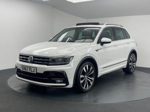 Quality Used 2017 WHITE VOLKSWAGEN TIGUAN SUV 2.0 TDI R-Line SUV 5dr Diesel DSG Euro 6 (s/s) (150 ps) (first registered on 2017-12-21) for sale in Manchester. This fantastic SUV car is located at Dace Specialist Car Centre Manchester, 718 Liverpool Road, Eccles, Manchester, M30 7LW – near Radcliffe and listed with price tag of £15940.00 GBP.