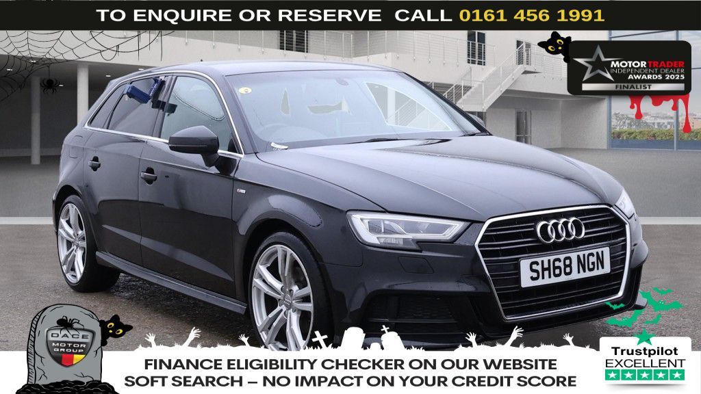 Quality Used 2018 BLACK AUDI A3 Hatchback 1.0 TFSI 30 S line Sportback 5dr Petrol Manual Euro 6 (s/s) (116 ps) (first registered on 2018-11-30) for sale in Wilmslow. This fantastic Hatchback car is located at Dace Specialist Car Centre Stockport, 417-429 Buxton Road, Stockport, Cheshire, SK2 7HE – near Wilmslow and listed with price tag of £13970.00 GBP.