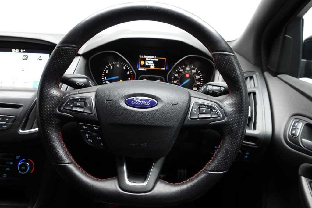 Other features: Automatic Dimming Rear View Mirror,Centre Console – Premium with Sliding Armrest – Covered Stowage Bins,Convenience Pack,Courtesy Light – Front and Rear Passengers – Overhead Halogen and Load Compartment,DEATC – Dual-Zone Electronic Automatic Temperature Control,Door Edge Protectors,Drivers Seat Lumbar Adjust,Ford Power Starter Button,Front and Rear Floor Mats with Red Stitching,Front Seat – Drivers Manual Height and Fore-Aft Adjustment,Front Seat – Passenger Manual Fore-Aft Adjustment,Front Seats – Sports Style,Gearshift Knob – Leather,Headliner – Black Woven,Heated Steering Wheel,Keyless Start,Leather-Trimmed Handbrake,MyKey,Rain Sensitive Windshield Wipers,Red Stitched Handbrake and Steering Wheel,Sports Style Pedals – Gear Knob and Steering Wheel,Steering Column – Rake and Reach Adjustment,Steering Wheel – 3-spoke Flat Bottom – Leather Trimmed 18in Alloy Wheels – ST-Line – Rock Metallic,Black Exterior Trim Detailing including Upper Door Line and Headlamp Surround,Body Colour Large Rear Spoiler and Side Skirts,Body Coloured Front Styling Kit with Centre Aero Foil,Door Mirrors – Body Colour Housing – Heated Electrically Operated Power Fold – Integrated Side Indicator,Locking Wheel Nuts,Power Tilt and Slide Sunroof,Quickclear Heated Front Windscreen with Heated Washer Jets,Rear Bumper with Integral Body Coloured Diffuser and Honeycomb Mesh in High-Gloss Black,Rear Privacy Glass,Red Painted Brake Calipers,Spare Wheel – Mini Steel,ST Line Stainless Steel Scuff Plates,Unique ST Rear Spoiler,Upper and Lower Grille – High Gloss Black Honeycomb Design,Windows – Electrically Operated Front and Rear with One Touch Lowering-Closing and Global Opening-Closing,Wipers – Standard with 6 Speed Interval Settings Active City Stop,Airbags – Driver and Front Passenger,Airbags – Front and Rear Side Curtain,Airbags – Front Side Impact,Alarm – Thatcham Category 1 with Volume Sensing and Perimeter,Anti-Lock Braking System – ABS with Electronic Brake Force Distribution – EBD,Cruise Control with Active Speed Limiter,Driver Assistance Pack,Electronic Stability Programme – ESP – with Traction Control and Emergency Brake Assist – EBA,Emergency Brake Warning – Automatic Hazard Warning Lights,Ford Easy-Fuel Capless Refuelling System,Ford Eco Mode – Driver Information System,Hill Start Assist,IPS – Intelligent Protection System,Parking Distance Sensors – Rear,Remote Central-Double Locking,Seats – ISOFIX Mounting Provision for Child Seats,Trip Computer,TVC – Torque Vectoring Control,Tyre Pressure Monitoring System Automatic Headlights,Blind Spot Information System,Candy Red,Deep Impact Blue,EPAS – Electric Power Assisted Steering,Extended Warranty 4 Years – 80000 Miles,Extended Warranty 5 Years – 100000 Miles,Front Fog Lights,Front Suspension – Independent with MacPherson Struts and Anti-Roll Bar,Frozen White,Halogen Headlights with Black Surround,Headlights – Courtesy Delay,LED Daytime Running Lights,Magnetic,Moondust Silver,Premium Ford SYNC3 DAB Navigation System,Race Red,Rear Lights – LED,Rear Suspension – Independent Control Blade Multi-Link System and Anti-Roll Bar,Rear View Camera,Shadow Black,Special Colours,Suspension – Sports,Tectonic Silver,View Cloth – Charcoal Black with Red Stitching