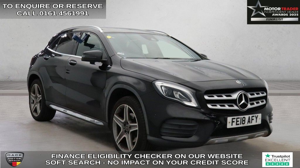 Quality Used 2018 BLACK MERCEDES-BENZ GLA SUV 2.0 GLA250 AMG Line (Premium Plus) SUV 5dr Petrol 7G-DCT 4MATIC Euro 6 (s/s) (211 ps) (first registered on 2018-03-01) for sale in Wilmslow. This fantastic SUV car is located at Dace Specialist Car Centre Stockport, 417-429 Buxton Road, Stockport, Cheshire, SK2 7HE – near Wilmslow and listed with price tag of £17940.00 GBP.