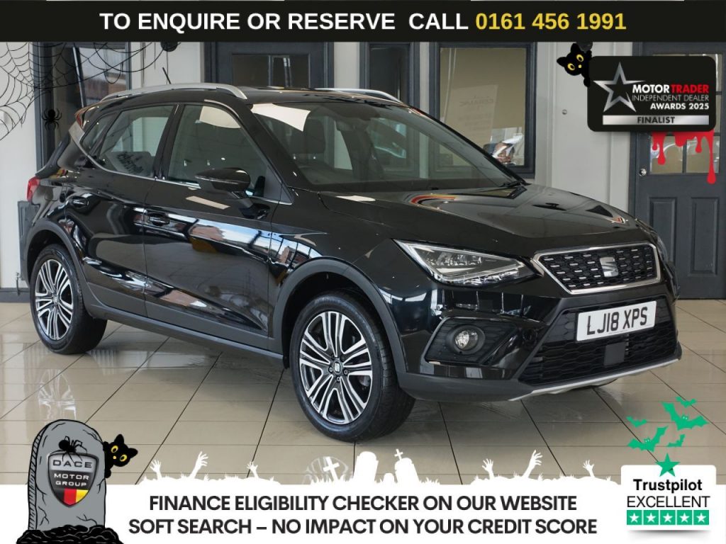 Quality Used 2018 BLACK SEAT ARONA SUV 1.0 TSI XCELLENCE SUV 5dr Petrol DSG Euro 6 (s/s) (115 ps) (first registered on 2018-04-28) for sale in Wilmslow. This fantastic SUV car is located at Dace Specialist Car Centre Stockport, 417-429 Buxton Road, Stockport, Cheshire, SK2 7HE – near Wilmslow and listed with price tag of £12490.00 GBP.