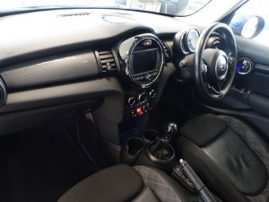 Other features: Air Conditioning – Manual,Automatic Door Window Lowering by Approx 6mm When Door Opens,Boot Release via Remote Control,Colour Line – Carbon Black,Cupholders – Two in Front and One in the Rear Centre Console,Decorative Rings Surrounding Dashboard Instruments in Chrome Plated,Door Sill Finishers – Metal Look and Model Dependent Lettering,External Visible VIN,Foldable Rear Backrest 60-40,Gearshift Lever Knob – Plastic,Gearshift-Selector Lever and Handbrake Lever Gaiters in Sensatec Artificial Leather,Handbrake Lever Grip – Plastic,Headliner – Satellite Grey,Headrests For All Seats – Manually Adjustable,Heater with Mechanical Control and Recirculating-Air Button,Interior Door Handles – Chrome Plated,Interior Lights – Integrated into Centre Front Headliner,Interior Mirror – Mechanical Anti-Dazzle,Interior Surface – Haze Grey,Interior Trim – Hazy Grey,Lashing Eyes in Luggage Compartment,Luggage Compartment – Light,Mechanical Seat Adjustment – Six Way Drivers Seat,Microfilter,MINI Central Display with Illuminated Ri 15in Alloy Wheels – Heli in Silver,Body Coloured Fuel Filler Cap in Rear Right Side Panel – Linked to Central Locking,Chrome Bezels around Rear Lights and Headlights,Door Handles – Chrome Plated,Exhaust Tailpipe – Visible – Single – Round – Left Hand Side with Chrome Finisher,Exterior Mirrors – Aspheric on Drivers Side – Electrically Adjustable,Front Side Indicators – Orange,Heated Mirrors and Windscreen Washer Jets,Heated Rear Window with Automatic Deactivation,Heated Window Heater,MINI Mobility System,Mirror Caps in Body Colour,Radiator Grille – Chrome Border and Slats in High-Gloss Black,Rear Fog Light,Roof in Body Colour,Roof Spoiler Painted in Roof Colour,Security Locking Wheel Bolts,Side Scuttles Black with Integrated Direction Indicator Orange,Sills – Bumper Edges – Wheel Arch Cover in Black,Stainless Steel Embellisher at Bottom Edge of all Windows,Tailgate Handle – High Gloss Black,White Indicators,Window Lifts – Electrical for Drivers and Front Passengers Sides 3 Point Seatbelts on all Seats,Airbags for Driver and Front Passenger – 6 Airbags as Standard,Alarm and Immobiliser – Thatcham CAT 1,Anti-Lock Braking System – ABS,Brake Pad Wear Indicator,Condition Based Service,Crash Sensor,DTC – Dynamic Traction Control with EDLC – Electronic Differential Lock Control,Dynamic Stability Control – DSC,Front Passenger ISOFIX and Airbag De-Activation Switch,Fuel Pump Automatic Cut-Off in Crash Situation,Locking System with Central Locking,On-Board Computer,Rear Window Wiper,Revolution Counter,Speedometer on Steering Column,TPWS – Tyre Pressure Warning System 17in Alloy Wheels – Tentacle Spoke in Silver,3rd Brake Light – Red,Air Conditioning – Automatic Dual Zone,CHILI Pack,Cruise Control with Brake Function,Diamond Cloth-Leather – Carbon Black – Carbon Black,Follow Me Home Function,Headlight – Beam-Throw Control Electrical with Manual Adjustment,Headlights and Daytime Running Lights – LED,Interior Light Pack,LED Fog Lights,MINI Driving Modes,MINI Excitement Pack,MINIMALISM Fuel Saving Technology,PDC – Park Distance Control – Rear,Power Steering with Servotronic,Rain Sensor and Automatic Headlight Activation,Sport Leather Steering Wheel,Starlight Blue,Storage Compartment Pack
