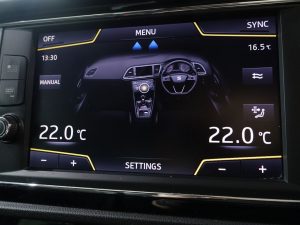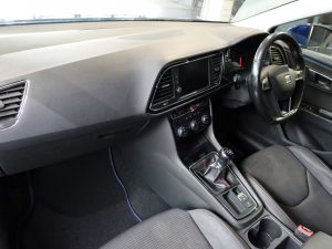 Other features: Active Front Head Restraints and 3 Rear Head Restraints,Aluminium Front Door Sill Trims with FR Logo,Boot Storage Net,Cargo Rings in the Boot,Convenience Pack Plus,Driver and Passenger Seat Height Adjustment,Driver and Passenger Sunvisor with Covered and Illuminated Mirrors,Drivers Seat Lumbar Adjustment,Dual Zone Climate Control,Front Seat Back Storage Pockets,Front Sports Seats,Fuel Filler Flap linked to Central Locking,Head Restraints – Height Adjustable Front,High Centre Console,Illuminated Glovebox,Instrument Lighting with Brightness Control,Interior Chrome Detailing,Multi Coloured Ambient Lighting,Reading Lights Front and Rear with Ambient Spots – Boot Lights and Illuminated Foot Area,Seats – Passenger Lumbar Adjustment,Split Folding Rear Seats – 60-40,Steering Wheel – Flat-Bottomed Perforated Leather with Red Stitching and FR Logo,Storage Box Under Drivers Seat 17in Alloy Wheels – Dynamic 30-2,Body-Coloured Door Handles,Body-Coloured Door Mirrors with Integrated LED Indicators,Bumpers – Exclusive FR Front and Rear,Dark Tinted Rear Windows,Electrically Folding Door Mirrors,Emergency Tyre Repair Kit,Front and Rear Electric Windows,High Gloss Black B and C Pillars,Illuminated Door Sill Plates,Radiator Grille Frame in Chrome,Radiator Grille in Black,Visual Twin Exhaust Pipes 7 Airbags,ABS – Anti-Lock Braking System – TCS – Traction Control System,Cruise Control,Electric Parking Brake Including Autohold Function,ESC – Electronic Stability Control and Tyre Pressure Warning Light Indicator,Front Assist with City Emergency Braking,Gearshift Indicator,Hill Hold Control,ISOFIX Points in Outer Rear Seats with Top Tether Anchorage Points,Low Fuel Warning Light,Multi-Collision Braking System,Outside Temperature Gauge,Rear Parking Sensors,Remote Central Locking with Deadlocks,RPM Counter,SEAT Drive Profile,Seatbelt Reminder – Front,Trip Computer,Two Remote Keys with Window Open-Close – Door Mirror Folding and Boot Opening Functionality Electro-Mechanical Power Steering,Electronic Differential Lock System – XDS,Full LED Headlights,Lights Left On Warning Buzzer,Lower Suspension – 15mm,Mystery Blue,Sports Suspension,Techny Cloth – Black