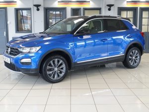 Quality Used 2018 BLUE VOLKSWAGEN T-ROC SUV 1.0 TSI Design SUV 5dr Petrol Manual Euro 6 (s/s) (115 ps) (first registered on 2018-05-24) for sale in Wilmslow. This fantastic SUV car is located at Dace Specialist Car Centre Stockport, 417-429 Buxton Road, Stockport, Cheshire, SK2 7HE – near Wilmslow and listed with price tag of £13490.00 GBP.
