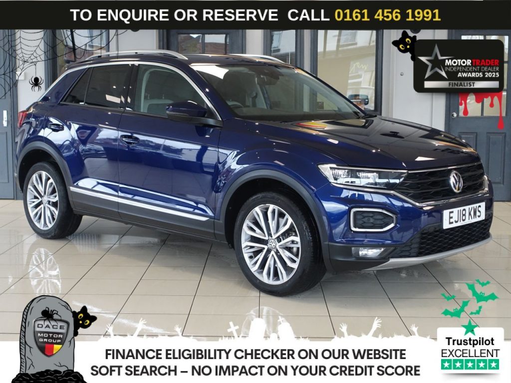 Quality Used 2018 BLUE VOLKSWAGEN T-ROC SUV 1.5 TSI EVO SEL SUV 5dr Petrol Manual Euro 6 (s/s) (150 ps) (first registered on 2018-04-27) for sale in Wilmslow. This fantastic SUV car is located at Dace Specialist Car Centre Stockport, 417-429 Buxton Road, Stockport, Cheshire, SK2 7HE – near Wilmslow and listed with price tag of £15970.00 GBP.