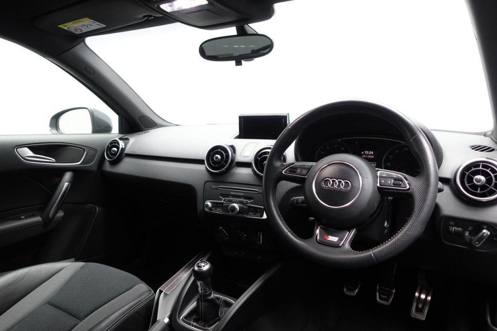 Other features: Air Conditioning,Air Vent Sleeves – High Gloss Black,Aluminium Trim for Control Switches-Glove Compartment-Door Handles-Door Sills,Centre Console with Two Cup Holders and 12V Socket,Cloth Headlining in Black,Connectivity Package,Door Sill Trims – Aluminium with S Line Logo,Driver and Front Passenger Seats with Manual Height-Forwards and Backwards Adjustment,Front Floor Mats,Glovebox – Illuminated,Head Restraints – Rear,Leather Handbrake Grip and Sports Gear Knob with Aluminium Trim,LED Interior Light Package,Manually Adjustable Lumbar Support in Front Seats,Rear Fog Lights,Seats – Front Easy Entry,Split Folding Rear Seat,Steering Wheel – 3-Spoke Leather – Multi-function – Sports,Steering Wheel – Height and Reach Adjustable,Tool Kit and Car Jack 17in Alloy Wheels – 10-Spoke Design High Gloss,17in Alloy Wheels – 10-Y-Spoke Design,17in Alloy Wheels – 10-Y-Spoke Design Gloss Black,Anti Theft Locking Wheel Bolts,Door Mirrors – Body Coloured with Integrated Indicators,Door Mirrors – Electrically Adjustable and Heated,Electric Windows – Front,Heat Insulating Glass – Windscreen and Side Windows,Heated Rear Windscreen,Polished Tailpipes,Rear Diffuser – Painted in Platinum Grey,S Line Badges on the Front Wings,S Line Body Styling,S Line Roof Spoiler,Tyre Repair Kit Acoustic Parking System – Rear,Adaptive Brake Lights,Audi Drive Select,Cruise Control,Driver – Front Passenger – Front Side and Head Airbag System,Drivers Information System – DIS,ESC – Electronic Stabilisation Control,First Aid Kit,Front Passenger Airbag Deactivation Switch,Hill Hold Assist,ISOFIX Child Seat Mounting,Remote Central Locking with 2 Fold Away Keys,Seat Belt Height Adjustment for Front Seats,Seat Belt Monitoring,Secondary Collision Brake Assist,Thatcham Category 1 Alarm and Immobiliser,Three-point Seat Belts,Tyre Pressure Monitoring System,Voice Control of Key Telephone and Radio Functions,Warning Triangle,Washer Fluid Level Indicator Audi Sound System,Daytona Grey,Electromechanical Power Steering,Front Fog Lights,Headlights – Xenon,LED Rear Lights,S Line Sports Suspension,Sprint Cloth-Leather – Sport Seats – S Line Embossed Logo – Black with Dark Silver Contrast Stitching