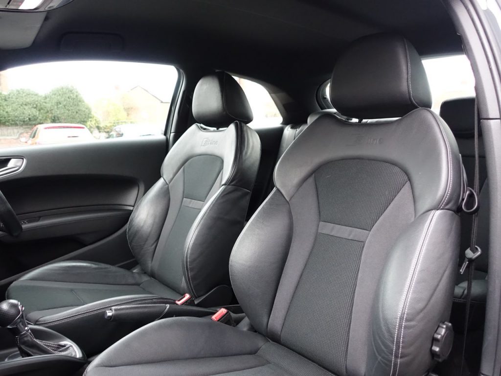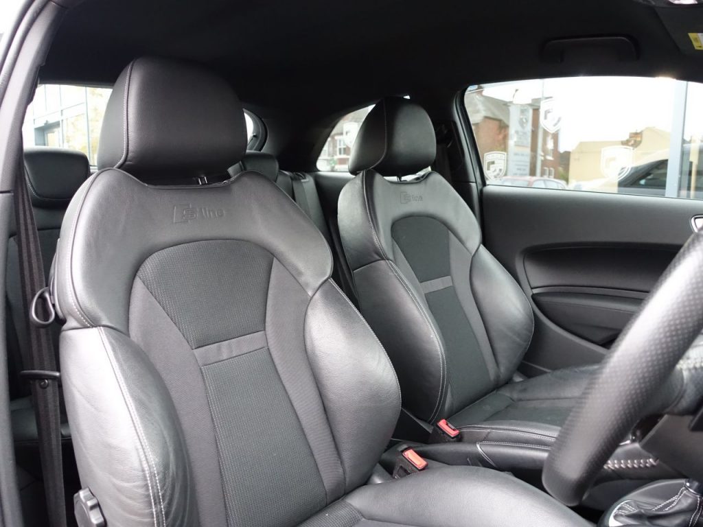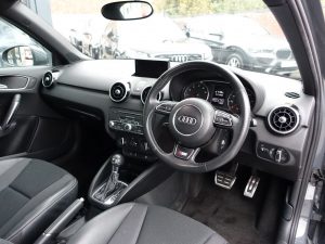 Other features: Air Conditioning,Air Vent Sleeves – High Gloss Black,Aluminium Trim for Control Switches-Glove Compartment-Door Handles-Door Sills,Centre Console with Two Cup Holders and 12V Socket,Cloth Headlining in Black,Connectivity Package,Door Sill Trims – Aluminium with S Line Logo,Driver and Front Passenger Seats with Manual Height-Forwards and Backwards Adjustment,Front Floor Mats,Glovebox – Illuminated,Head Restraints – Rear,Leather Handbrake Grip and Sports Gear Knob with Aluminium Trim,LED Interior Light Package,Manually Adjustable Lumbar Support in Front Seats,Rear Fog Lights,Seats – Front Easy Entry,Split Folding Rear Seat,Steering Wheel – 3-Spoke Leather – Multi-function – Sports – Shift Paddles,Steering Wheel – Height and Reach Adjustable,Tool Kit and Car Jack 17in Alloy Wheels – 10-Spoke Design High Gloss,17in Alloy Wheels – 10-Y-Spoke Design,Anti Theft Locking Wheel Bolts,Door Mirrors – Body Coloured with Integrated Indicators,Door Mirrors – Electrically Adjustable and Heated,Electric Windows – Front,Heat Insulating Glass – Windscreen and Side Windows,Heated Rear Windscreen,Polished Tailpipes,Rear Diffuser – Painted in Platinum Grey,S Line Badges on the Front Wings,S Line Body Styling,S Line Roof Spoiler,Tyre Repair Kit Acoustic Parking System – Rear,Adaptive Brake Lights,Audi Drive Select,Cruise Control,Driver – Front Passenger – Front Side and Head Airbag System,Drivers Information System – DIS,ESC – Electronic Stabilisation Control,First Aid Kit,Front Passenger Airbag Deactivation Switch,Hill Hold Assist,ISOFIX Child Seat Mounting,Remote Central Locking with 2 Fold Away Keys,Seat Belt Height Adjustment for Front Seats,Seat Belt Monitoring,Secondary Collision Brake Assist,Thatcham Category 1 Alarm and Immobiliser,Three-point Seat Belts,Tyre Pressure Monitoring System,Voice Control of Key Telephone and Radio Functions,Warning Triangle,Washer Fluid Level Indicator Audi Sound System,Customised Paint,Daytona Grey,Electromechanical Power Steering,Front Fog Lights,Headlights – Xenon,LED Rear Lights,Nano Grey,S Line Sports Suspension