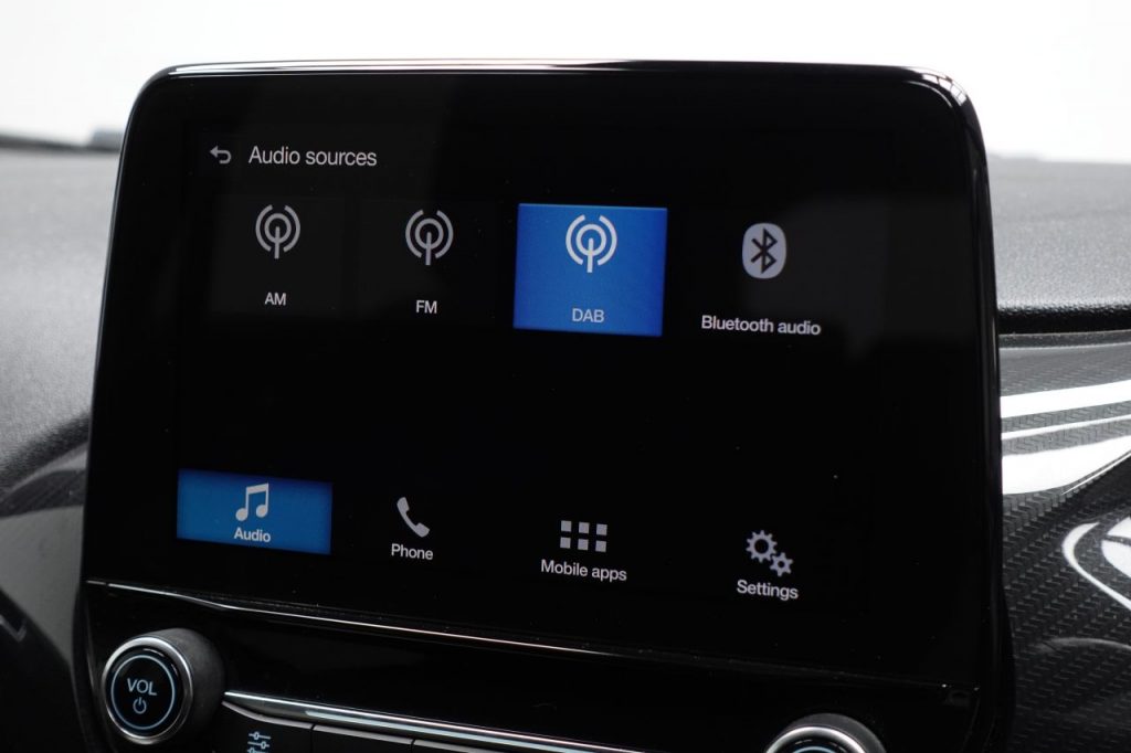 Other features: 3-Spoke Leather Trimmed Steering Wheel with Audio Controls,Active Logo Front Door Threshold Plates,Adjustable Boot Load Floor,Air Conditioning – Manual,Automatic Rain Sensing Wipers and Auto-Dimming Rear View Mirror,Centre Console with Armrest and Illuminated Cupholders,Comfort Pack,Courtesy Light – Front Map Light and Rear – Overhead LED,Door Edge Protectors,Door Lever – Chrome Finish,Drivers Seat Lumbar Support,Floor Mats – Front and Rear,Front Seat – Drivers Manual Height and Fore-Aft Adjustment,Gearshift Knob – Leather-Trimmed,Glovebox – Illuminated,Headliner – Black Woven,Leather-Trimmed Handbrake,MyKey,Overhead Console – Sunglasses Holder,Rear Fog Lamps,Rear Seat – 60-40 Split Back and Cushion,Seats – Passenger Lumbar Support,Steering Column – Rake and Reach Adjustment,Warning Triangle Storage,Yellow Colour Theme to Key Interior Areas 17in Alloy Wheels – 5 Spoke Shadow Black – Machined Finish,Black Contrast Coloured Electrically Operated and Heated Door Mirrors with Side Indicators,Black Roof Rails,Detachable Towbar Coupling,Door Handles – Body Colour,Electric Windows – Rear,Front Bumper – Body Coloured,Quickclear Heated Windscreen,Rear Bumper – Body Coloured Upper and Self Colour Lower,Rear Privacy Glass,Rear Spoiler – Body Colour with Centre High Mounted Stop Light,Rugged Bodystyling Kit with Active Front Wing Badges,Shadow Black Contrast Roof and Mirrors,Tyre Repair Kit,Windows – Electrically Operated Front and Rear with One Touch Lowering-Closing on Drivers Side and Global Closing Airbags – Driver and Front Passenger,Airbags – Front and Rear Side Curtain,Airbags – Front Side Impact,Anti-Lock Braking System – ABS with Electronic Brake Force Distribution – EBD,City Pack,Cruise Control,Driver Alert,Driver Assistance Pack,Emergency Brake Warning – Automatic Hazard Warning Lights,Enhanced Electronic Stability Control – ESC with Traction Control – Emergency Brake Assist – EBA – Hill Start Assist – HSA and Trailer Sway Control,Ford Easy-Fuel Capless Refuelling System,Ford KeyFree System,IPS – Intelligent Protection System,NCAP Pack,Remote Central Locking and Engine Immobiliser,Seats – ISOFIX Mounting Provision for Child Seats,Selectable Drive Modes – ECO – Normal – Slippery,Tailgate Wash-Wipe,Thatcham Category 1 Alarm,Trip Computer,TSR – Traffic Sign Recognition,Tyre Pressure Monitoring System – TPMS Blind Spot Information System with Cross Traffic Alert,CD Player,Chrome Blue,Elow-Domo Fabric – Ebony,EPAS – Electric Power Assisted Steering,Ford Navigation System with Ford SYNC 3 – Apple CarPlay and Android Auto,Front Fog Lights including Cornering Lights – Bright Bezel,Frozen White,Full LED Headlamps,Headlights – Automatic High Beam Assist,Headlights – Automatic On-Off,Headlights – Halogen Projector with Black Bezel and Dedicated LED Daytime Running Lights,Luxe Yellow,Magnetic,Moondust Silver,Rear Lights – LED Night Signature,Rear View Camera,Rough Road Suspension Including Increased Ride Height