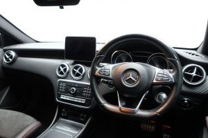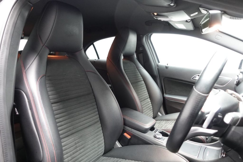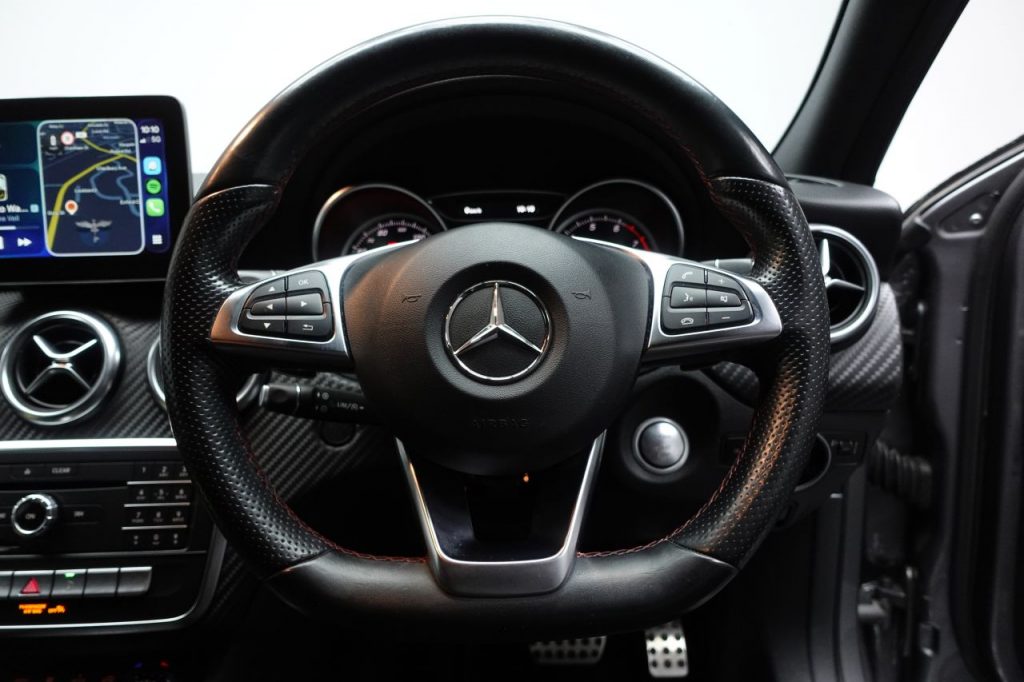 Other features: Air Vents with Surround and Cruciform Nozzle in Silver Chrome,Ambient Lighting in Headrests and Interior Door Handles,Brushed Stainless Steel Sports Pedals with Rubber Studs,Centre Armrest – Front with Stowage,Cup Holder – Double – Front,Direct Select Shift Lever with Steering Wheel Shift Paddles,Direction Indicators with Lane-Changer Function,Floor Mats – Red Stitched Edging – AMG Lettering,Footwell Lighting – Front and Rear,Four-way Lumbar Support for Driver and Front Passenger,Glove Compartment – Illuminated,Illuminated Front Door Sills with Mercedes-Benz Lettering,Illumination – Storage Compartment,Instrument Cluster with Four Analogue Dials and Needles Suspended in Six-O-Clock Position,KEYLESS-GO Starting Function,Lighting in Stowage Compartment and Vanity Mirrors,Luggage Compartment Cover,Rain-Sensing Windscreen Wipers with Two Sensitivity Settings,Reading Lights and Console Light in Front and Rear,Rear Seats – Split Folding 1-3 2-3,Rear View Mirror – Additional Lighting,Roof Lining – Black,Seat Comfort 18in Alloy Wheels – AMG 5-Twin-Spoke Design – Painted in Titanium Grey with a High Sheen Finish,18in Alloy Wheels – AMG Multi-Spoke Design,AMG Bodystyling – Front and Rear Apron and Side Skirts,Beltline Strips – Chrome,Bodystyling – Side Skirts – Body-Coloured,Brake Calipers – Mercedes-Benz Lettering on Front,Bumpers – Body Coloured,Door Handles – Body Coloured,Door Mirrors – Electrically Adjustable and Heated with Integrated LED Indicators,Electric Windows – 4,Exhaust System – Twin Trapezoidal Tailpipes in Polished Stainless Steel,Glass – Rear Windscreen – Heated with Timer Control,Night Package,Panoramic Glass Sunroof,Privacy Glass,Radiator Grille – Diamond with Pins in Chrome and Silver Louvre with Chrome Insert,Rear Fog Light,TIREFIT Tyre-Sealant Kit ABS – Anti-Lock Braking System with BAS – Brake Assist,Active Bonnet – Pedestrian Safety Measure which Detects an Impact and Raises Bonnet by 65mm,Active Braking Assist,Adaptive Brake Assist with Hold Function and Hill Start Assist,Adaptive Brake Lights,Airbags – Dual Stage – Driver and Front Passenger,Airbags – Head and Sidebags – Driver and Front Passenger,Airbags – Windowbags for Driver and Front Passenger,Alarm System with Immobiliser and Interior Protection – Thatcham Category 1,ATTENTION Assist,Automatic Child Seat Recognition Sensor,Brake-Pad Wear Warning Indicator,Childproof Locks – Manually Operated for Rear Doors and Electrically Operated for Rear Power Windows,Controller on Centre Console with Chrome Surround,Crash-Responsive Emergency Lighting,Cruise Control with Limiter,Drivers Kneebag,Driving Assistance Package,Dynamic Select with a Choice of Driving Modes – ECO-Comfort-Sport and Individual,Electric Parking Brake,Electronic Key – Chrome Surround,ESP – Electronic Stability Programme with ASR – Ac Artico Leather-Dinamica Microfibre – Black with Red Contrast Stitching,Cavansite Blue,Cirrus White,Cosmos Black,DAB Digital Radio Tuner,Garmin Map Pilot Navigation System,Halogen Headlights with Integrated Daytime Running Lights,Headlamp Assist – Automatic Headlamp Activation,High Level Third Brake Light – LED,Jupiter Red,Mercedes Me – Remote Online Services,Mountain Grey,Parking Pilot,Part LED Tail Lights,Polar Silver,Power Steering – Sports Direct Steer System with Speed Sensitive Servo Assistance,Selective Damping,Surround Sound System – Harman Kardon Logic 7 with Dolby Digital 5-1 and DTS,Suspension – Comfort – Lowered by 20mm Front and 15mm Rear