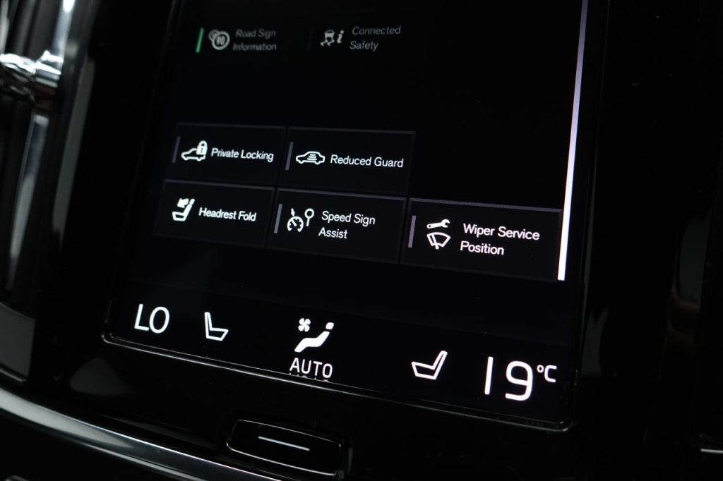 Other features: 2-Zone Electronic Climate Control with CleanZone Air Quality System with Pollen Filter,A-Pillar Parking Ticket Holder,Ambient Door and Instrument Panel Lighting,Auto Dimming Rear View Mirror,Automatic Load Cover,B-Pillar Ventilation,Black Headlining,Bright Metal Luggage Compartment Threshold,Cargo Divider with Grocery Bag Holder,Centre Console Cupholders and Storage,Drivers Side Lower Dashboard Storage Compartment,Front and Rear Aluminium Tread Plates,Front and Rear Door Pocket and Front Cupholder Illumination,Front and Rear Reading Lights – Theatre Lighting and Centre Armrest Storage Illumination,Front Footwell and Side Step Illumination,Front Seat Cushion Extensions,Front Tunnel Net Pocket,Heated Front Seats,Height and Reach Adjustable Steering Column,Illuminated Front and Rear Tread Plates,Illuminated Vanity Mirrors with Ticket Holder,Keyless Start,Lockable Glovebox Compartment with Illumination,Luggage Compartment Illumination,Metal Mesh Inlays,Multicolour Theatre Lighting,Perforated Leather Gear Knob,Per 18in Alloy Wheels – 5 Spoke Diamond Cut Matt Black,Colour Co-Ordinated Autofolding Heated Power Door Mirrors,Dual Integrated Exhaust Pipes with High Gloss Black Surround,Front and Rear Power Windows,High Gloss Black Deco Lower Front Bumper,High Gloss Black Mesh Front Grille with Silk Metal Surround,Locking Wheel Nuts,Roof Rails – Integrated Silver,Roof Spoiler,Silver Matt Door Mirrors and Window Surrounds,Tempa Spare Wheel and Jack 12.3in Active TFT Crystal Drivers Information Display,Active Bonnet,Adaptive Brake Lights including High Level LED Brake Light,Adaptive Cruise Control,Anti-Theft Alarm including Immobiliser – Volume Sensor and Level Sensor,City Safety with Steer Assist,Drive Mode Settings,Driver Knee Airbag,Dual Stage Driver and Passenger Airbags,First Aid Kit,Hill Start Assist,IC – Inflatable Curtains – Full Length,ISOFIX Attachment – Outer Rear Seats,Key Integrated Remote Control Central Locking including Fuel Flap with Deadlocking System and Auto Open-Close Power Windows,Lane Keeping Aid with Driver Alert Control,Mechanical Child Locks – Rear Doors,Oncoming Lane Mitigation,Passenger Airbag Cut-Off Switch,Perforated Leather Key Integrated Remote,Pilot Assist – Up to 80mph,Power Parking Brake with Auto Hold Function,Private Locking for Tailgate,Rear Park Assist,Road Sign Information Display,Run-Off Road Mitigation,Run-Off Road Protection,Seatbelt Reminder and Pretensioners – All Seats,SIPS – Side Impact Protection System,SIP Adjustable Steering Force,Automatic Headlight Levelling System,Front LED Fog Lights with Cornering Function,Home Safe and Approach Lighting,LED Headlights with Active High Beam Incorporating Day Running Lights,Lowered Sports Chassis,Nappa-Nubuck Leather Contour Sports – Charcoal,Park Assist Pilot – Automatic Parallel and 90 Degree Parking,Rear Park Assist Camera,Savile Grey,Speed Limiter,Speed Sensitive Steering