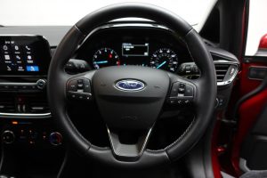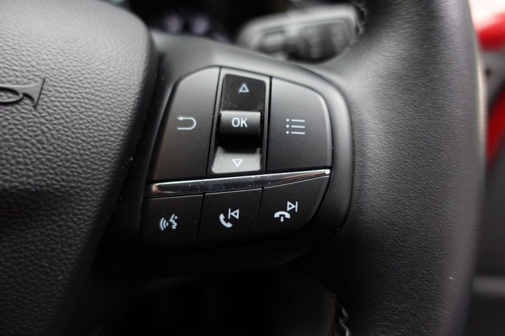 Other features: 3-Spoke Leather Trimmed Steering Wheel with Audio Controls,Air Conditioning – Manual,Centre Console with Two Cupholders and 12V Power Point,Courtesy Light – Front Map Light and Rear – Overhead LED,Door Lever – Chrome Finish,Front Seat – Drivers Manual Height and Fore-Aft Adjustment,Gearshift Knob – Leather-Trimmed,Glovebox – Illuminated,Headliner – Woven,Leather-Trimmed Handbrake,MyKey,Overhead Console – Sunglasses Holder,Rear Fog Lamps,Rear Seat – 60-40 Split Back and Cushion,Seats – Front Comfort Style,Steering Column – Rake and Reach Adjustment,Warning Triangle Storage 15in Alloy Wheels – 8 Spoke,Chrome Belt Line Finisher,Door Handles – Body Colour,Door Mirrors – Heated – Electric – Integrated Side Indicators – Body Coloured,Front Bumper – Body Coloured,Front Upper Grille – Chrome – Horizontal Bars,Quickclear Heated Windscreen,Rear Bumper – Body Coloured Upper and Self Colour Lower,Rear Spoiler – Body Colour with Centre High Mounted Stop Light,Tyre Repair Kit,Wipers – Standard with 6 Speed Interval Settings Airbags – Driver and Front Passenger,Airbags – Front and Rear Side Curtain,Airbags – Front Side Impact,Anti-Lock Braking System – ABS with Electronic Brake Force Distribution – EBD,Emergency Brake Warning – Automatic Hazard Warning Lights,Enhanced Electronic Stability Control – ESC with Traction Control – Emergency Brake Assist – EBA – Hill Start Assist – HSA and Trailer Sway Control,Ford Easy-Fuel Capless Refuelling System,IPS – Intelligent Protection System,NCAP Pack,Remote Central Locking and Engine Immobiliser,Seats – ISOFIX Mounting Provision for Child Seats,Tailgate Wash-Wipe,Thatcham Category 1 Alarm,Trip Computer,Tyre Pressure Monitoring System – TPMS EPAS – Electric Power Assisted Steering,Front Fog Lights including Cornering Lights – Bright Bezel,Headlights – Automatic On-Off,Headlights – Halogen Projector with Black Bezel and Dedicated LED Daytime Running Lights,Race Red,Rear Lights – Non-LED,Ruby Red