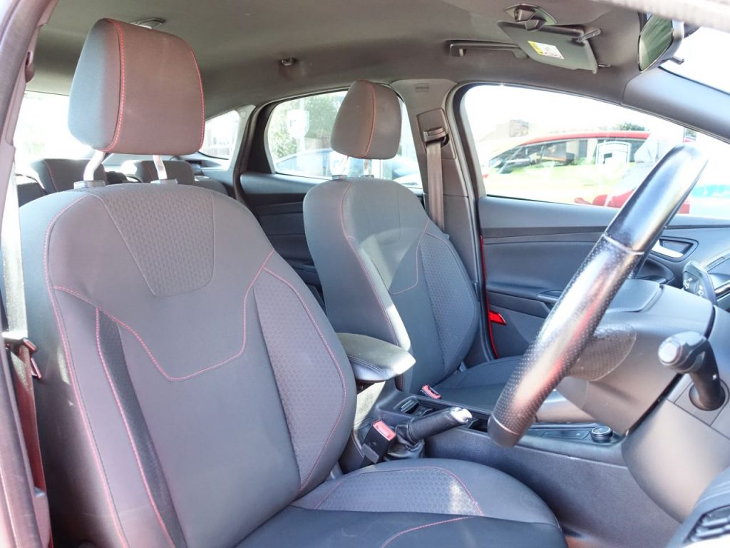 Other features: Air Conditioning – Manual,Centre Console – Premium with Sliding Armrest – Covered Stowage Bins,Courtesy Light – Front and Rear Passengers – Overhead Halogen and Load Compartment,Drivers Seat Lumbar Adjust,Ford Power Starter Button,Front Floor Mats,Front Seat – Drivers Manual Height and Fore-Aft Adjustment,Front Seat – Passenger Manual Fore-Aft Adjustment,Front Seats – Sports Style,Gearshift Knob – Leather,Headliner – Black Woven,Keyless Start,Leather-Trimmed Handbrake,MyKey,Sports Style Pedals – Gear Knob and Steering Wheel,Steering Column – Rake and Reach Adjustment,Steering Wheel – 3-spoke Flat Bottom – Leather Trimmed 17in Alloy Wheels – Rock Metallic Finish,Black Exterior Trim Detailing including Upper Door Line and Headlamp Surround,Body Colour Large Rear Spoiler and Side Skirts,Body Coloured Front Styling Kit with Centre Aero Foil,Door Mirrors – Heated – Electric – Integrated Side Indicators – Body Coloured,Locking Wheel Nuts,Quickclear Heated Front Windscreen with Heated Washer Jets,Rear Bumper with Integral Body Coloured Diffuser and Honeycomb Mesh in High-Gloss Black,Spare Wheel – Mini Steel,ST Line Stainless Steel Scuff Plates,Upper and Lower Grille – High Gloss Black Honeycomb Design,Windows – Electrically Operated Front with One Touch Lowering on Drivers Side,Wipers – Standard with 6 Speed Interval Settings Airbags – Driver and Front Passenger,Airbags – Front and Rear Side Curtain,Airbags – Front Side Impact,Alarm – Thatcham Category 1 with Volume Sensing and Perimeter,Anti-Lock Braking System – ABS with Electronic Brake Force Distribution – EBD,Electronic Stability Programme – ESP – with Traction Control and Emergency Brake Assist – EBA,Emergency Brake Warning – Automatic Hazard Warning Lights,Ford Easy-Fuel Capless Refuelling System,Ford Eco Mode – Driver Information System,Hill Start Assist,IPS – Intelligent Protection System,Remote Central-Double Locking,Seats – ISOFIX Mounting Provision for Child Seats,Trip Computer,TVC – Torque Vectoring Control,Tyre Pressure Monitoring System Candy Red,EPAS – Electric Power Assisted Steering,Front Fog Lights,Front Suspension – Independent with MacPherson Struts and Anti-Roll Bar,Halogen Headlights with Black Surround,Headlights – Courtesy Delay,LED Daytime Running Lights,Race Red,Rear Lights – LED,Rear Suspension – Independent Control Blade Multi-Link System and Anti-Roll Bar,Suspension – Sports