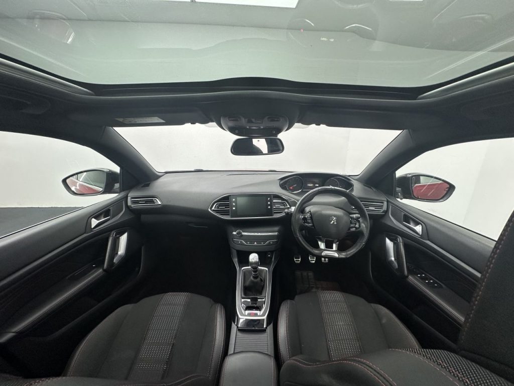 Other features: 1-3 – 2-3 Folding Rear Seat,Aluminium Style Pedals and Door Sills,Automatic Dual Zone Climate Control,Central Front Armrest with Height and Longitudinal Adjustment,Dashboard Trim – Satin Chrome,Door Armrests and Facia Panels Trimmed in Mistral Leather Effect Trim with Red Stitch Detail,Fixing Rings – x4 in Load Area,Front Armrest and Gear Lever Gaiter with Red Contrast Stitching,Front Central Console with Cup-Holder,Front Interior Light with Reading Spotlights x2 and Rear Interior Light with Timer,Front Optimised Safety Headrests and Rear Retractable Headrests – x3 – Height-Adjustable,Front Windscreen Wipers with Multi-Speed Setting,Gear Lever in Satin Chrome,Grab Handles x4 – Retractable – Damped,Illuminated Vanity Mirrors,Interior Door Handles – Satin Chrome,Map Pockets on Front Seat Backs,Mistral Floor Mats with Red Contrast Stitching,Mistral Full-Grain Leather Steering Wheel with Red Stitch Detail,Peugeot i-Cockpit,Peugeot i-Cockpit – Compact Multi-Function Steering Wheel,Rear Central Armrest with Ski Fla 18in Alloy Wheels – Diamant Two Tone Finish Diamond Cut,Cielo Panoramic Glass Roof with Electric Blind,Dark Tinted Rear Side and Tailgate Windows,Door Mirror Shells – Nera Black,Exterior Door Handles – Body-Colour,Full Size Spare Wheel,GT Line Emblems – Front Wings and Tailgate,Heated Rear Windscreen,LED Sequential Scrolling Front Indicators,One-Touch Electric Front and Rear Windows with Pinch Protection,Power Folding Door Mirrors – Includes Courtesy Approach Lights,Radiator Grille – Chequered with Chrome Edge Trim and Red Peugeot Lettering,Rear Number Plate Lights x2,Side Indicator Lights Integrated Into Door Mirrors,Side Window Trim – Chrome,Sports Front Bumper Design,Sports Side Skirts,Steel Space Saver Spare Wheel,Tow Bar – Detachable Without Tools,Twin Exhaust Effect Trim,Visibility Pack Airbags – Adaptive Driver and Front Passenger,Airbags – Driver and Front Passenger Side,Airbags – Front and Rear Curtain,Alarm – Thatcham Category 1,Anti-Lock Braking – ABS – Electronic Brake Force Distribution – EBFD – Emergency Braking Assistance – EBA,Automatic Door Locking When Moving Off,Automatic Hazard Light Activation Upon Heavy Brake Application,Child Locking Functionality on Rear Doors,Colour Reversing Camera,Deadlocking,Drive Assist Pack,Electric Parking Brake includes Hill Assist,Electronic Code Immobiliser,ESP – Electronic Stability Programme,Exterior Temperature Indicator with Ice Warning,Front and Rear Parking Sensors,Front Three-Point Retractable Seatbelts with Force Limiters,Gear Shift Indicator,ISOFIX Child Seat Fittings -x2- in the Outer Rear Seats,Multifunction Trip Computer,Peugeot i-Cockpit – Head-Up Instrument Panel,PEUGEOT Open and Go System,Programmable Cruise Control and Speed Limiter,Rear Three-Point Retractable Seatbelts x3 with Force Limiters in the Outer Rear Seats,Rear Windscree CD Player,City Park Enhanced Parking Assistance System with Blind Spot Monitoring,Cumulus Grey,Driver Sport Pack,Electric Power Steering with Reach and Rake Adjustable Steering Column,Front Fog Lights – LED,Full LED Headlights,Headlights Left On Audible Warning,Hurricane Grey,Leather – Black Mistral with Red Stitching,LED Daytime Running Lights Built into the Headlight Unit,Magnetic Blue,Nera Black,Oxford Red Leather Effect and Cloth – Mistral with Red Overstitch Detail,Rear LED Peugeot Signature Claw Effect Lights – With Daylight Function,Self Levelling Headlights,Ultimate Red,White