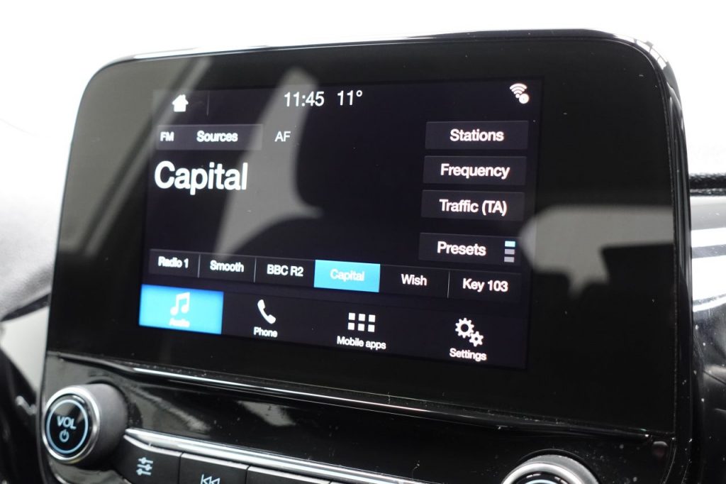 Other features: 3-Spoke Leather Trimmed Steering Wheel with Audio Controls,Air Conditioning – Manual,Centre Console with Two Cupholders and 12V Power Point,Courtesy Light – Front Map Light and Rear – Overhead LED,Door Lever – Chrome Finish,Gearshift Knob – Leather-Trimmed,Glovebox – Illuminated,Headliner – Woven,Leather-Trimmed Handbrake,Manual Drivers Seat Height Adjustment,MyKey,Overhead Console – Sunglasses Holder,Rear Fog Lamps,Rear Seat – 60-40 Split Back and Cushion,Seats – Front Comfort Style,Steering Column – Rake and Reach Adjustment,Warning Triangle Storage 15in Alloy Wheels – 8 Spoke,Body Coloured Electrically Operated Door Mirrors with Integrated Side Indicators,Chrome Belt Line Finisher,Chrome Upper Grille,Door Handles – Body Colour,Electrically-Operated Front Windows with One Touch Drivers,Front Bumper – Body Colour,Quickclear Heated Windscreen,Rear Bumper – Body Coloured Upper and Self Colour Lower,Rear Spoiler – Body Colour,Tyre Repair Kit,Wipers – Standard with 6 Speed Interval Settings ABS – Anti-lock Braking System,Airbags – Driver,Airbags – Front and Rear Side Curtain,Airbags – Front Passenger,Airbags – Side Curtain,Airbags – Side Impact,EBD – Electronic Brakeforce Distribution,Electronic Stability Control – ESC with Traction Control and Emergency Brake Assist – EBA,Electronic Stability Programme – ESP with Hill Start Assist,Ford Easy Fuel System,IPS – Intelligent Protection System,NCAP Pack,Remote Central Locking and Engine Immobiliser,Tailgate Wash-Wipe,Thatcham Alarm,Trip Computer,Tyre Pressure Monitoring System – TPMS Dynamo Cloth – Ebony,Front Fog Lamps with Cornering Lights,Headlights – Automatic On-Off,Headlights – Halogen Projector with Black Bezel and Dedicated LED Daytime Running Lights,Moondust Silver,Power Steering