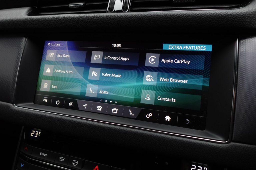 Other features: 10-Way Electric Front Seats,2-Zone Climate Control,3 Rear Headrests,3-Flash Lane Change Indicators,300 Sport Branded Soft Grain Leather Steering Wheel,4-Way Electric Lumbar Adjust,40-20-40 Split Fold Rear Seat,Ambient Interior Lighting,Analogue Dials with Central TFT Display,Auto-Dimming Interior Rear View Mirror,Bright Metal Pedals,Centre Console with Storage and Armrest,Chrome Seat Switches,Dark Morse Code Aluminium Instrument Panel Finisher,Deployable Front Air Vents,Ebony Suedecloth Headlining,Front Door Storage Space,Gloss Black Trim Finisher,Heated Front Seats,Heated Steering Wheel,Hooks in Loadspace,InControl Remote and Apps,InControl Remote Premium for Warranty Period,Interior Lighting,Jaguar Smart Key System with Keyless Start,Loadbay – Luggage Tie Downs,Lockable Glovebox,Luxtec Wrapped Instrument Panel Topper with Yellow Contrast Stitching,Metal Treadplates with 300 Sport Branding,Overhead Lighting Console,Overhead Stowage for Sunglasses,Passive Front Head Restraints,Rain Sensing Windscreen Wipers,R 19in Alloy Wheels – 5 Spoke Style 5035 with Dark Satin Grey Metallic Diamond Turned Finish,300 Sport Badge,300 Sport Black Brake Calipers,Acoustic Laminated Windscreen,Bumper Lower Valance – Dark Satin Grey,Dark Satin Grey Bumper,Dark Satin Grey Door Mirror Caps,Dark Satin Grey Rear Valance,Dark Satin Grey Side Cheeks,Dark Satin Grey Side Sills,Dark Satin Grey Side Vents,Dark Satin Grey Side Window Surround,Dark Satin Grey Tailgate-Boot Lid Finisher,Electric Windows – Front and Rear with One-Touch Open-Close and Anti-Trap,Gloss Black Radiator Grille with Dark Satin Grey Surround,Heat Insulating Glass,Heated Door Mirrors,Heated Front Windscreen,Heated Rear Window,Jaguar Script and Leaper,Locking Wheel Nuts,Rear Spoiler – Dark Satin Grey,Tinted Glass,Tyre Repair System,XF Badge 350mm Front Brakes,ABS – Anti-locking Braking System,Airbags – Front Side,Airbags – Full Length Side Window Curtain,ASPC – All Surface Progress Control,Autonomous Emergency Braking,Brake Pad Wear Indicator,Cruise Control with Speed Limiter,Dynamic Stability Control and Traction Control,ECO Driving Style Assistant,Emergency Braking,EPB – Electronic Parking Brake – Drive Away Release,Front Airbags with Passenger Seat Occupant Detector,Front Parking Aid,Hazard Lights Under Heavy Braking,Hill Launch Assist,ISOFIX Rear,JaguarDrive Control,Lane Departure Warning,Outside Temperature Gauge,Pedestrian Contact Sensing,Perimeter Sensing Alarm and Immobiliser,Power Operated Child Locks,Rear Parking Aid,Remote Control Central Locking with Dead Locking and Drive-Away Locking,Seat Belt Reminder,Traffic Sign Recognition with Adaptive Speed Limiter,Trailer Stability Assist,Tyre Pressure Monitoring System,Voice Control Automatic Headlights,CD-DVD Player,EPAS – Electric Power Assisted Steering,Headlight Power Wash,Meridian Surround Sound System,Partial LED Rear Lights,Perforated Grained Leather – Ebony with Yellow Stitching,Torque Vectoring,Xenon Headlights with LED Signature