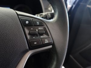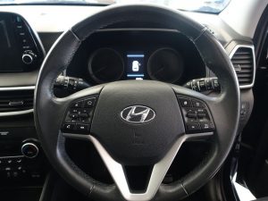 WONDERFULLY WELL CARED FOR SUV – COMES WITH A FULL HYUNDAI MAIN DEALER SERVICE HISTORY + SATELLITE NAVIGATION + REAR VIEW CAMERA + BLUETOOTH PHONE AND MEDIA CONNECTIVITY + DAB DIGITAL RADIO + TOUCH SCREEN MEDIA DISPLAY + PARKING SENSORS + DUAL ZONE AIR CONDITIONING WITH CLIMATE CONTROL + HILL HOLD START ASSISTANCE + AUTOMATIC HEADLIGHTS + CRUISE CONTROL + ECO STOP/START SYSTEM + LED DAYTIME RUNNING LIGHTS + LANE ASSIST + ROOF SPOILER + LEATHER MULTIFUNCTIONAL STEERING WHEEL + ROOF RAILS + ELECTR