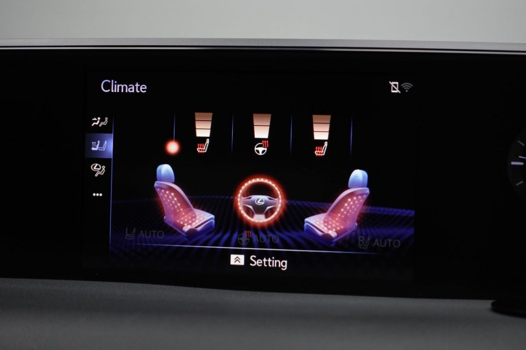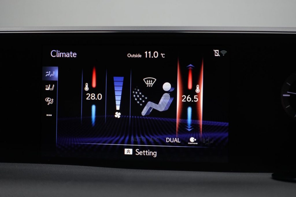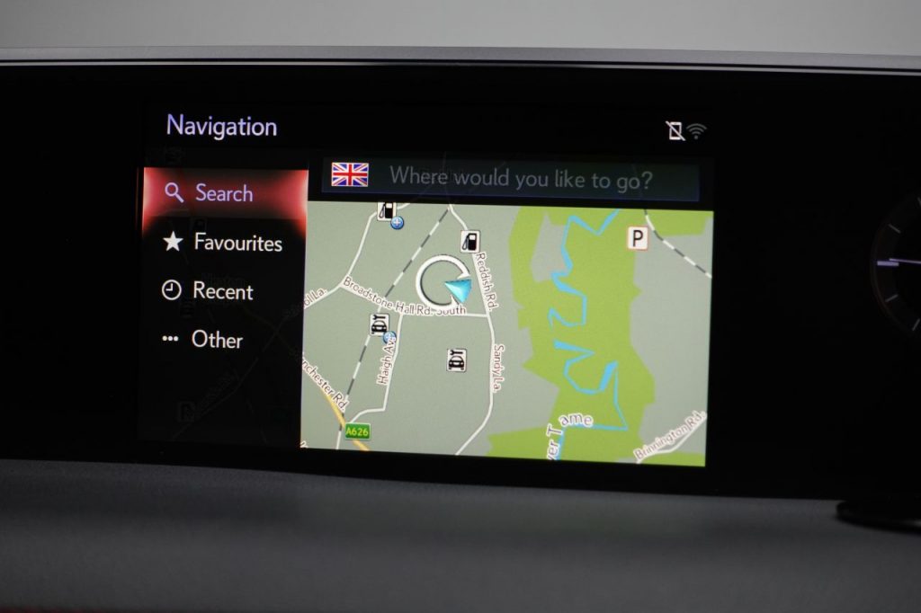 Other features: 2 Cup Holders in Front Centre Console,2-Way Electrical Lumbar Adjustment for Driver,2x Folding Shopping Bag Hooks in Boot,2x Sun Visors with Vanity Mirror and Lamp,4x Tie Down Hooks in Boot,Auto Dimming Rear View Mirror,Card Holder Installed In the Drivers and Passengers Sun Visors,Centre Armrest with Storage – 4.4 Litre,Driver and Passenger 8-Way Electrically Adjustable Front Seats,Driver and Passenger Door Pocket with Bottle Holder,Dual Zone Climate Control Air Conditioning System,F SPORT Aluminium Sports Pedals,F SPORT Front Seat Headrest Adjustable Forwards and Backwards,F SPORT Heated Leather Steering Wheel with Paddle Shifts,F SPORT Leather Gear Lever,F SPORT Premium Plus Pack,F SPORT Tech and Safety Pack,Glove Box – 7.2 Litres,Heated Front Seats,Heated Leather Steering Wheel,Japanese Washi Paper Instrument Panel,Lane Change Flasher Function,LED Interior Illumination,Map Pockets in Rear of Passenger Front Seats,Premium Pack,Push Button Start,Rain Sensitive Windscreen Wipers,Rear Air Vents,Rear Armrest w 18in Alloy Wheels – F Sport,Acoustic Noise Reducing Front Windscreen,F SPORT Exterior Styling,Front and Rear One-Touch Automatic Power Windows with Jam Protection,Heated and Auto-Folding Outside Mirrors with Turn Indicators,Illuminated Door Handles with Puddle Light,Locking Wheel Nuts – Thatcham Approved,Privacy Glass – Rear Doors and Tailgate,Roof Rails – Chrome,Single Hidden Exhaust Pipe,Sunroof 2 x ISOFIX Child Rear Seat Restraints,2 x Remote Key Fobs,ABS – Anti-Lock Braking System,Adjustable Seat Belt Anchor Points,Analogue Lexus Clock,Anti Theft System – Alarm – Intrusion Sensor – Tilt Sensor – Glass Breakage Sensor and Engine Immobiliser,ASC – Active Sound Control,BAS – Brake Assist System,Curtain Shield Airbags – Front and Rear,Driver and Front Passenger 2-Stage Airbags,Driver and Front Passenger Knee Airbags,Driver and Front Passenger Side Airbags,Driving Modes – Normal – EV – Eco – Sport,EBD – Electronic Brakeforce Distribution,ECB – Electronically Controlled Braking,EPB – Electronic Parking Brake,Front Seat Belt with Pre-Tensioners – Force Limiter and Tention Reduction 3-Point with Active Safety Link to PCS,Hill Start Assist Control,Lexus Safety System – 2 Plus,Parking Assist Sensors – 4 Front and 4 Rear,Passenger Airbag Cut Off Switch,Rear Outer Seat Belt with Pre-Tensioners Force Limiter and Tention Reduction,Reversing Camera with Back Guide Lines,Secondary Collision Brake – SCB,Speed Sensi Azure Blue,Blazing Carnelian,EPS – Electric Power Steering – Speed Sensitive,F SPORT Fabric Tahara – Leather – Black,F SPORT Smooth Leather – Black,F SPORT Smooth Leather – Flare Red,F Sport White,Fuji Red,Graphite Black,Headlight Cleaners,LED Cornering Lights,LED Daytime Running Lights,LED Front and Rear Fog Lights,LED Low Beam and Hi-beam Headlight with Auto High Beam – AHB,Mercury Grey,Sonic Titanium,Sports Suspension with Performance Dampers,Tahara – Flare Red,Terrane Khaki,Velvet Black