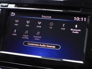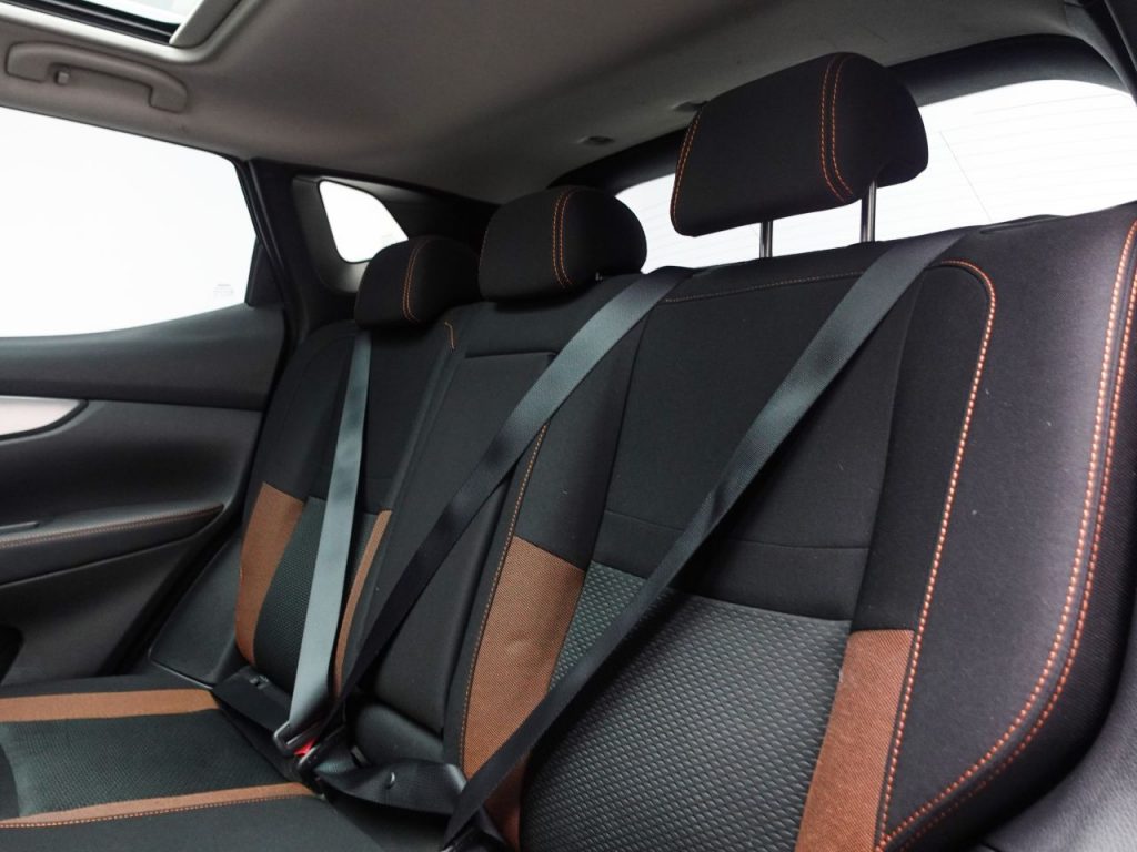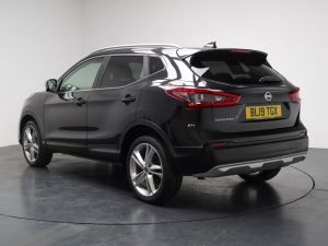 Other features: 3 Height Adjustable Rear Headrests,60-40 Split Rear Folding Seats,Ambient Lighting Centre Console,Auto Wipers,Boot Light,Carbon Graphite Dash Trim,Centre Console Storage and Armrest,Chrome Interior Door Handles,Daytime Running Lights Dip Function When Turn Signal Applied,Driver Seat Height Adjustment,Drivers Seat with Manual Lumbar Support,Dual Zone Climate Control Air Conditioning,Front and Rear Door Pockets with Drink Holders,Height Adjustable Front Head Restraints,Individual Rear Seat Reading Lights,Interior Ambient Lighting,Leather D Shaped Steering Wheel,Leather Gear Lever,Leather Knee Pad,Luggage Board System,Monoform Front Seats with Plastic Backboard,One Touch 4 x Auto Windows with Illuminated Switches,Parcel Shelf – Stow Function Under Luggage Board,Passengers Seat with Manual Lumbar Support,Pollen Filter,Remote Audio Control,Seats – Passengers Height Adjustment,Start Push Button,Steering Wheel Mounted Audio Controls,Synthetic Leather Wrapped Door Handle with Contrasting Stitching,Tech Pack,Tilt and 19in Alloy Wheels – Ibiscus,Body Coloured Handles,Chrome Glass Surround,Electric Heated Auto-Folding Door Mirrors,Front and Rear Electric Windows,Front and Rear Styling Pack,Glass Roof Pack,Gloss Silver Door Mirror Caps,LED Pack,Matt Silver Roof Rails,Puncture Repair Kit,Rear Roof Spoiler AutoHold Function – Stand Still Assist,Cruise Control with Speed Limiter,Driver-Passenger-Side and Curtain Airbags,Electric Parking Brake,ESP ABS EBD and Brake Assist,Front and Rear Seat Belts with Load Limiter and Pretensioners,Front and Rear Seatbelt Warning,Height Adjustable Front Seatbelts,Hill Start Assist,Intelligent Around View Monitor,Intelligent Park Assist,ISOFIX Child Seat Anchoring Points – Rear x2,Nissan Anti Theft System Immobiliser,Nissan Intelligent Key,Outside Temperature Sensor,Passenger Airbag Deactivation System,Rear Door Child Locks,Rear View Camera,Rear Wiper with Reverse Link,Remote Central Locking with Superlocking,Safety Shield Plus,Selectable Steering – Normal or Sport,Smart Vision Pack,Thatcham Category 1 Alarm,TPMS – Tyre Pressure Monitoring System,Trip Computer Cloth – Anthracite Bi-Colour,Electric Speed-Sensitive Power Steering,Front Fog Lights,Intelligent Auto Headlight,LED Signature Daytime Running Lights,Nissan Chassis Controls,Pearl Black,Underbody Vortex Generators