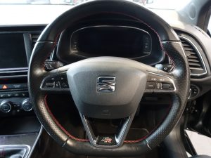 Other features: Armrest – Front with Storage Compartment,Black Interior Roof Lining,Convenience Pack Plus,Digital Cockpit,Driver and Passenger Seat Height Adjustment,Driver and Passenger Sunvisor with Covered and Illuminated Mirrors,Drivers Seat Lumbar Adjustment,Dual Zone Climate Control,Front Seat Back Storage Pockets,Front Sports Seats,Illuminated Aluminium Front Door Sill with Trim Logo,Instrument Lighting with Brightness Control,Leather Gear Knob,LED Interior Illumination Pack,Multi Coloured Ambient Lighting,Seats – Passenger Lumbar Adjustment,Split Folding Rear Seats 60-40 with Armrest,Steering Wheel – Flat-Bottomed Perforated Leather with Red Stitching and FR Logo,Storage Box Under Driver and Front Passenger Seat,Two Height-Adjustable Front and Rear Headrests,Winter Pack 18in Alloy Wheels – Performance Matte 30-2,Bumpers – Exclusive FR Front and Rear,Dark Tinted Rear Windows,Electrically Adjustable Folding and Heated Door Mirrors,Emergency Tyre Repair Kit,Front and Rear Electric Windows,Matte Black Door Mirrors with Integrated LED Indicators,Radiator Grille Frame in Matte Black,Radiator Grille in Black,Roof Rails – Black,Visual Twin Exhaust Pipes 7 Airbags,ABS and Traction Control System – TCS – Electronic Stability Control – ESC – and Electronic Differential Lock System – XDS,Alarm – Volumetric,Cruise Control,Digital Clock,Electric Parking Brake Including Autohold Function,Front and Rear Parking Sensors,Front Assist with Pedestrian Protection,Gearshift Indicator,ISOFIX Points in Outer Rear Seats with Top Tether Anchorage Points,Low Fuel Warning Light,Multi-Collision Braking System,Outside Temperature Gauge,RPM Counter,SEAT Drive Profile,Seatbelt Reminder – Front,Trip Computer,Tyre Pressure Monitoring System Electro-Mechanical Progressive Power Steering,Full LED Headlights,Lights Left On Warning Buzzer,Midnight Black,Sports Suspension
