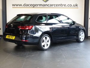 Quality Used 2019 BLACK SEAT LEON Estate 1.5 TSI EVO FR ST 5dr Petrol DSG Euro 6 (s/s) (150 ps) (first registered on 2019-03-21) for sale in Altrincham. This fantastic Estate car is located at Dace German Car Centre, 309 Manchester Road, Stockport, Cheshire, SK4 5EA – near Altrincham and listed with price tag of £11640.00 GBP.