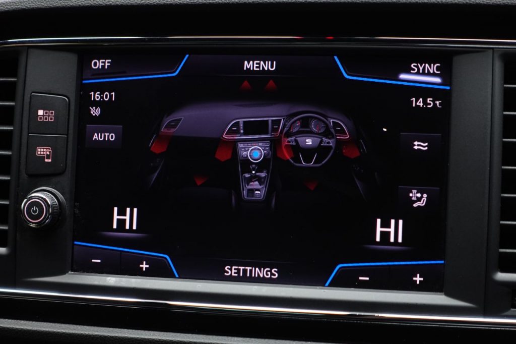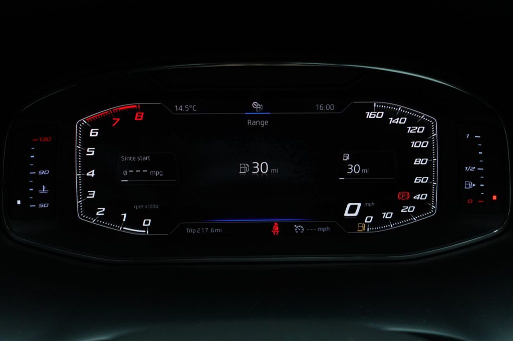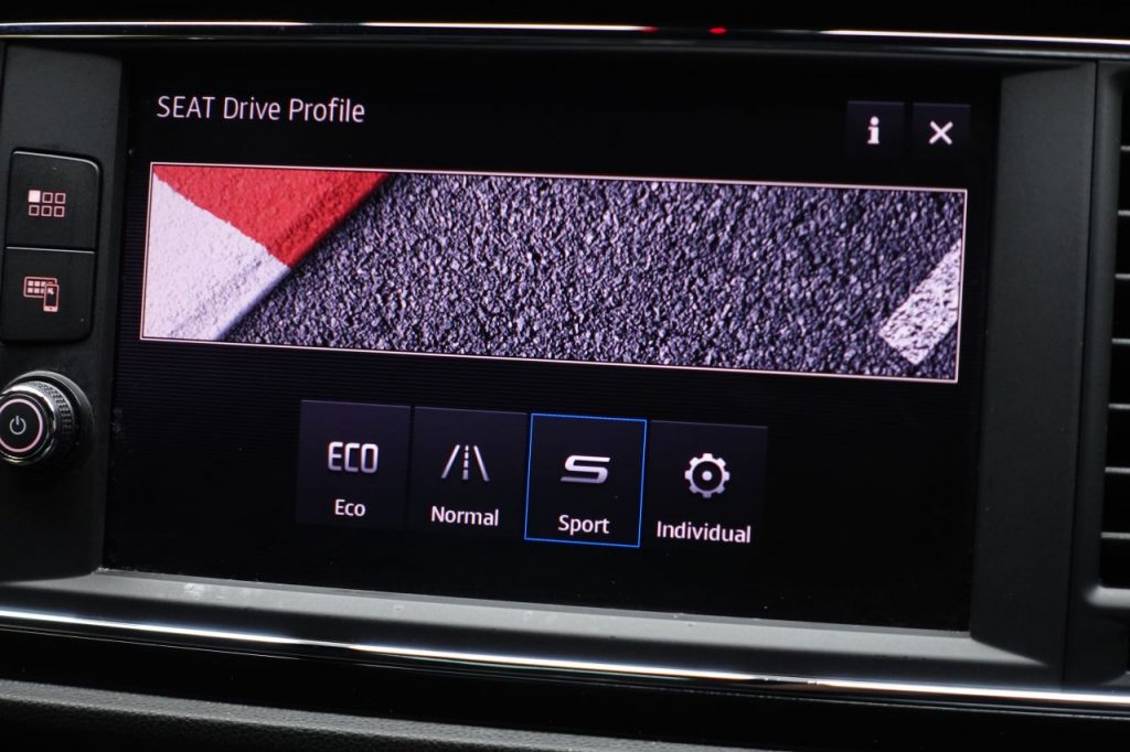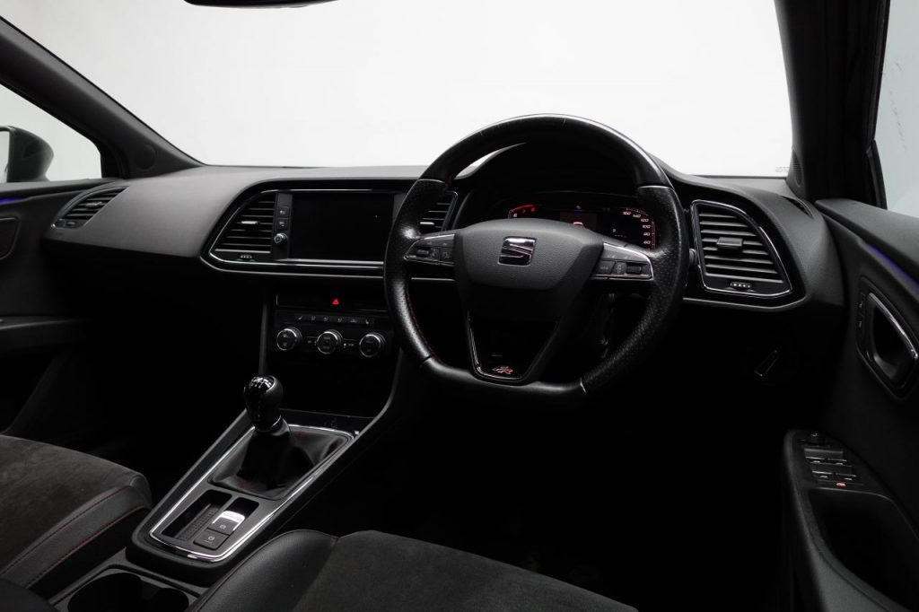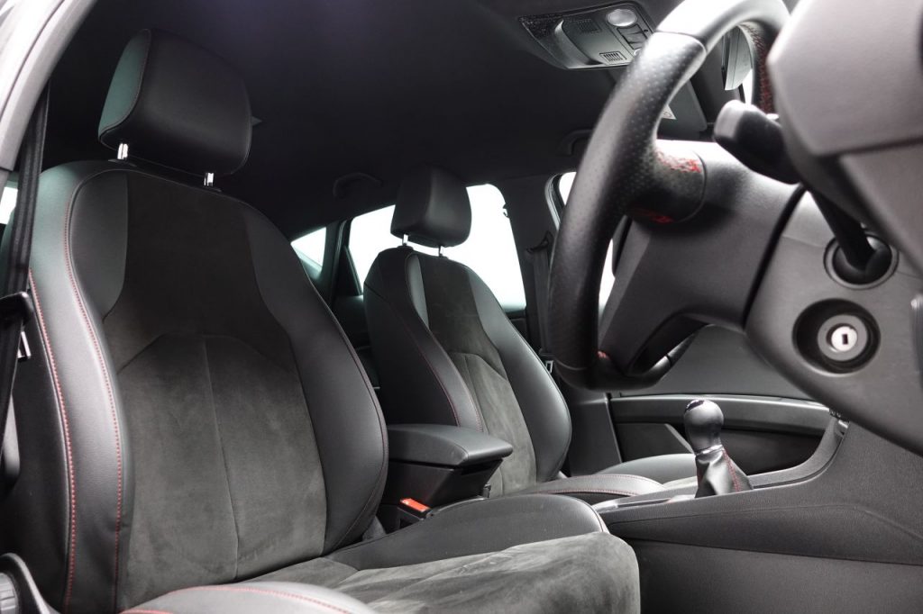 Other features: Armrest – Front with Storage Compartment,Black Interior Roof Lining,Convenience Pack Plus,Digital Cockpit,Driver and Passenger Seat Height Adjustment,Driver and Passenger Sunvisor with Covered and Illuminated Mirrors,Drivers Seat Lumbar Adjustment,Dual Zone Climate Control,Front Seat Back Storage Pockets,Front Sports Seats,Illuminated Aluminium Front Door Sill with Trim Logo,Instrument Lighting with Brightness Control,Leather Gear Knob,LED Interior Illumination Pack,Multi Coloured Ambient Lighting,Seats – Passenger Lumbar Adjustment,Split Folding Rear Seats 60-40 with Armrest,Steering Wheel – Flat-Bottomed Perforated Leather with Red Stitching and FR Logo,Storage Box Under Driver and Front Passenger Seat,Two Height-Adjustable Front and Rear Headrests,Winter Pack 18in Alloy Wheels – Performance Matte 30-2,Bumpers – Exclusive FR Front and Rear,Dark Tinted Rear Windows,Electrically Adjustable Folding and Heated Door Mirrors,Emergency Tyre Repair Kit,Front and Rear Electric Windows,Matte Black Door Mirrors with Integrated LED Indicators,Radiator Grille Frame in Matte Black,Radiator Grille in Black,Visual Twin Exhaust Pipes 7 Airbags,ABS and Traction Control System – TCS – Electronic Stability Control – ESC – and Electronic Differential Lock System – XDS,Alarm – Volumetric,Cruise Control,Digital Clock,Electric Parking Brake Including Autohold Function,Front and Rear Parking Sensors,Front Assist with Pedestrian Protection,Gearshift Indicator,ISOFIX Points in Outer Rear Seats with Top Tether Anchorage Points,Low Fuel Warning Light,Multi-Collision Braking System,Outside Temperature Gauge,RPM Counter,SEAT Drive Profile,Seatbelt Reminder – Front,Trip Computer,Tyre Pressure Monitoring System Electro-Mechanical Progressive Power Steering,Full LED Headlights,Lights Left On Warning Buzzer,Microsuede Sports Seats – Black with Red Stitching,Midnight Black,Sports Suspension