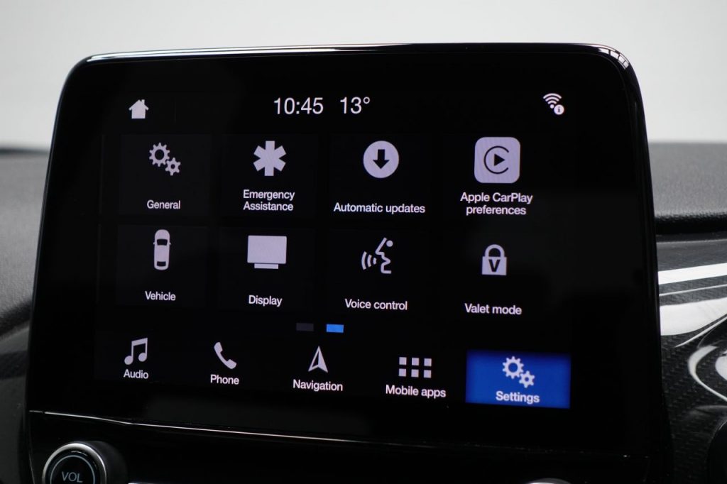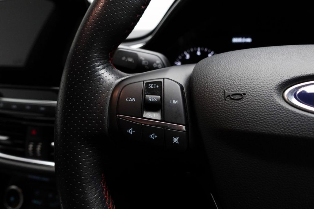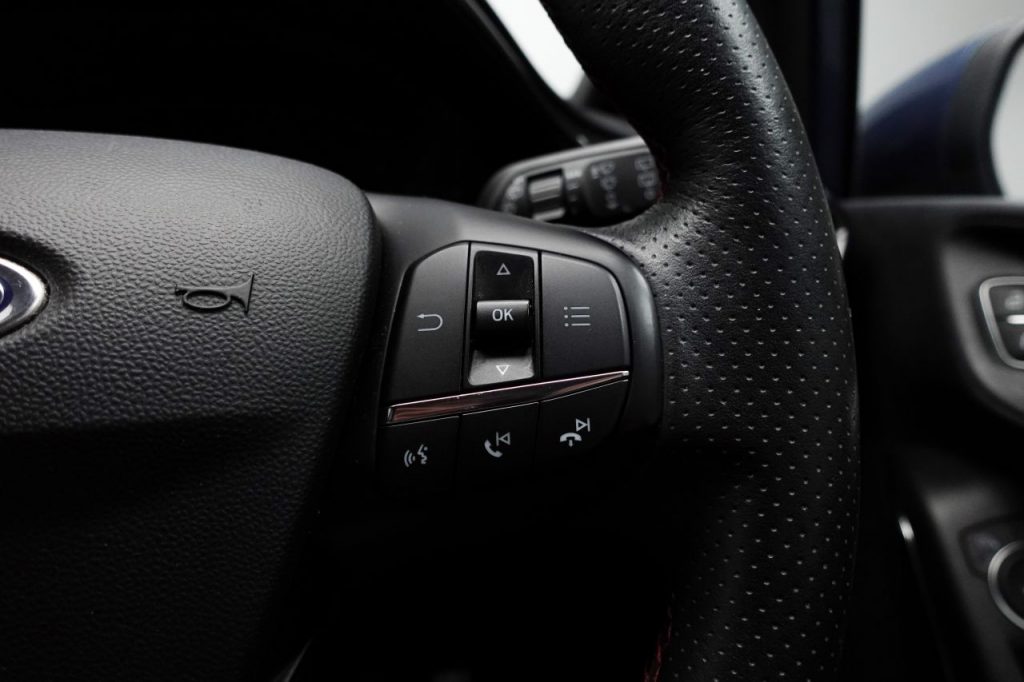 Other features: Adjustable Boot Load Floor,Air Conditioning – Manual,Centre Console with Two Cupholders and 12V Power Point,Comfort Pack,Courtesy Light – Front Map Light and Rear – Overhead LED,Door Edge Protectors,Door Lever – Chrome Finish,Drivers Seat Lumbar Support – Passenger Seat Height Adjust and Passenger Lumbar Support,Front Seat – Drivers Manual Height and Fore-Aft Adjustment,Front Seats – Sports Style,Gearshift Knob – Leather-Trimmed with Aluminium Insert,Glovebox – Illuminated,Headliner – Black Woven,Keyless Start with Ford Power Start Button,Leather-Trimmed Handbrake,MyKey,Overhead Console – Sunglasses Holder,Rear Fog Lamps,Rear Seat – 60-40 Split Back and Cushion,Sports Pedals,Steering Column – Rake and Reach Adjustment,Steering Wheel – ST-Line 3-Spoke Leather Trimmed Flat Bottomed,Warning Triangle Storage 17in Alloy Wheels – ST-Line 5-spoke – Rock Metallic,18in Alloy Wheels – ST-Line 5-Spoke – Rock Metallic – Machined Finish,Black Belt Line Finisher,Detachable Towbar Coupling,Door Handles – Body Colour,Door Mirrors – Heated – Electric – Integrated Side Indicators – Body Coloured,Electric Windows – Front,Electric Windows – Rear,Front Bumper – Unique ST-Line,Front Door Threshold Plates – ST-Line,Large Rear Spoiler – Body Colour with Centre High Mounted Stop Light,Quickclear Heated Windscreen,Rear Bumper – Unique ST-Line,Rear Privacy Glass,Shadow Black Contrast Roof and Mirrors,Spare Wheel – 14in Steel,ST-Line Side Skirt Body Mouldings – Body Colour,Tyre Repair Kit,Unique ST-Line Upper Grille and Full Bodystyling Kit with ST-Line Wing Badges,Wipers – Standard with 6 Speed Interval Settings Airbags – Driver and Front Passenger,Airbags – Front and Rear Side Curtain,Airbags – Front Side Impact,Anti-Lock Braking System – ABS with Electronic Brake Force Distribution – EBD,City Pack,Driver Assistance Pack,Emergency Brake Warning – Automatic Hazard Warning Lights,Enhanced Electronic Stability Control – ESC with Traction Control – Emergency Brake Assist – EBA – Hill Start Assist – HSA and Trailer Sway Control,Ford Easy-Fuel Capless Refuelling System,IPS – Intelligent Protection System,NCAP Pack,Remote Central-Double Locking,Seats – ISOFIX Mounting Provision for Child Seats,Tailgate Wash-Wipe,Thatcham Category 1 Alarm,Trip Computer,Tyre Pressure Monitoring System – TPMS Agate Black,B and O PLAY In-Car Audio Premium Sound System,B and O PLAY In-Car Audio Premium Sound System with Ford SYNC 3 Navigation System and FordPass Connect – Embedded Modem,Blind Spot Information System with Cross Traffic Alert,CD Player,Chrome Blue,Court Cloth – Ebony,Cruise Control,Desert Island Blue,EPAS – Electric Power Assisted Steering,Ford Navigation System with Ford SYNC 3 – Apple CarPlay and Android Auto and FordPass Connect – Embedded Modem,Frozen White,Full LED Headlamps,Halogen Projector Headlights with LED Daytime Running Lights,Headlights – Automatic On-Off,Magnetic,Metropolis White,Moondust Silver,Race Red,Rear Lights – Non-LED,Rear View Camera,Ruby Red,Sports Tuned Suspension,ST-Line Front Fog Lamps with Cornering Lights