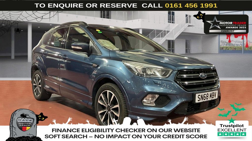 Quality Used 2019 BLUE FORD KUGA SUV 1.5T EcoBoost GPF ST-Line SUV 5dr Petrol Manual Euro 6 (s/s) (150 ps) (first registered on 2019-01-15) for sale in Wilmslow. This fantastic SUV car is located at Dace Specialist Car Centre Stockport, 417-429 Buxton Road, Stockport, Cheshire, SK2 7HE – near Wilmslow and listed with price tag of £10840.00 GBP.