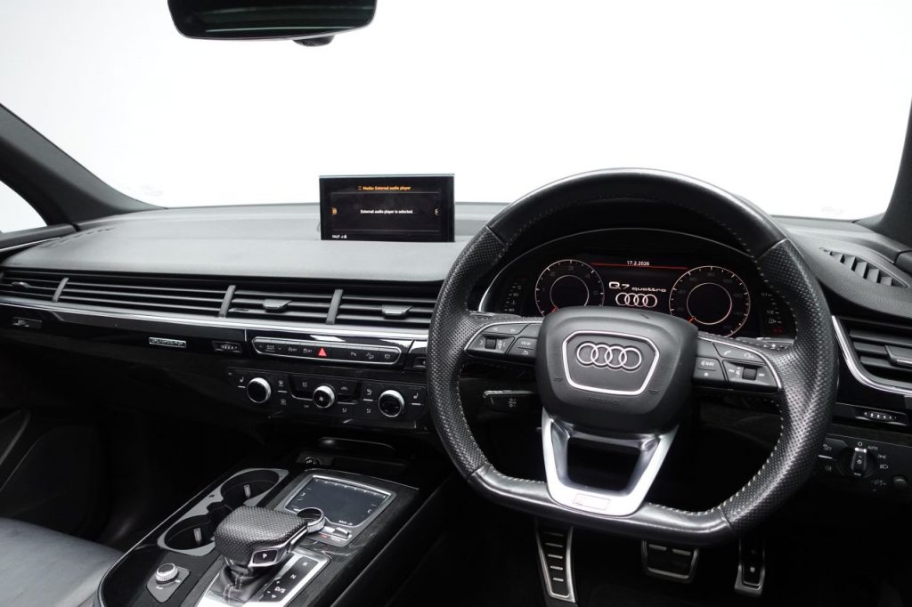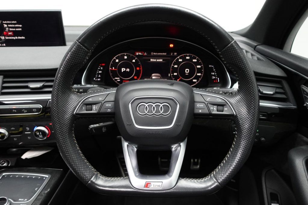 Other features: 7 Seats,Audi Virtual Cockpit,Auto-Dimming Rear-View Mirror,Cloth Headlining in Black,Dual-Zone Electronic Climate Control,Electrically Adjustable Front Seats with 4-Way Lumbar Support and Driver Memory Function,Front and Rear Floor Mats,Front Centre Armrest – Adjustable,Heated Front Seats,Interior Light Package,Luggage Compartment Sill Protection in Stainless Steel,Pedals in Stainless Steel,Power Operated Tailgate,Steering Wheel – 3-Spoke Leather-Multi-function-Flat Bottomed-Sports-Shift Paddles,Tool Kit,Upper Inlays in High-gloss Black with Lower Inlays in Oak Grey 21in Alloy Wheels – 5-Arm-Turbine Design – Contrasting Grey – Partly Polished Alloy Wheels,21in Alloy Wheels – 5-Spoke Blade Design Anthracite Black-Polished-Gloss Turned Finish,21in Alloy Wheels – 5-Twin-Spoke Design Audi Sport – Titanium Look with Gloss Turned Finish,Anti Theft Locking Wheel Bolts,Door Mirrors – Heated-Electrically Adjustable-Folding with Memory Function,Electric Windows – Front and Rear,Panoramic Glass Sunroof,Privacy Glass,Running Boards,Titanium Black Door Mirrors,Titanium Black Styling Pack with Black Roof Rails,Tyre Repair Kit 6-Airbag System,Anti-Theft Alarm,Audi Drive Select,Audi Hill Hold Assist,Audi Parking System Plus,Audi Pre-Sense City,Colour Drivers Information System with 7in High-Resolution TFT Screen,Cruise Control with Speed Limiter,Electromechanical Parking Brake,ESC – Electronic Stabilisation Control inc ABS – EBD – ASR – EDL,First Aid Kit and Warning Triangle,Hill Descent Control,ISOFIX Child Seat Mounting,Keyless Go with Remote Central Locking,Rear View Camera,Seat Belt Monitoring,Tyre Pressure Loss Indicator,Voice Control System Adaptive Air Sport Suspension,Audi Exclusive,Daytona Grey,High-Beam Assist,LED Headlights with LED Rear Lights and Dynamic Rear Indicators and High-Beam Assist,Light and Rain Sensor,Power Steering – Servotronic,Samurai Grey
