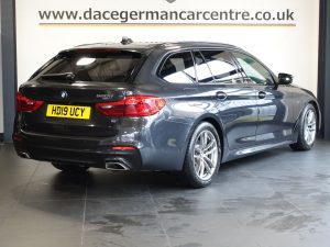 Quality Used 2019 GREY BMW 5 SERIES Estate 2.0 520d M Sport Touring 5dr Diesel Auto Euro 6 (s/s) (190 ps) (first registered on 2019-06-28) for sale in Altrincham. This fantastic Estate car is located at Dace German Car Centre, 309 Manchester Road, Stockport, Cheshire, SK4 5EA – near Altrincham and listed with price tag of £17740.00 GBP.