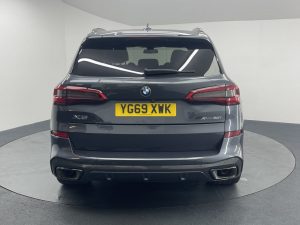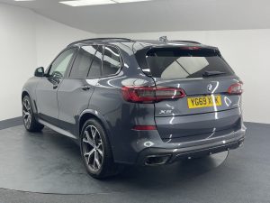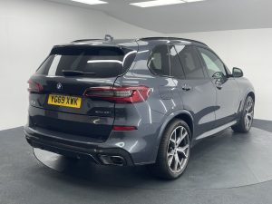 Other features: Air Conditioning – Automatic with 2.5 Zone Control,Ambient Interior Lighting,Armrest – Front and Rear Integrated into Door Trim,Automatically Dimming Rear View Mirror,BMW Gesture Control,Centre Armrest – Rear – Foldable with 2 Cupholders and Storage Compartment,Centre Console Includes Storage Compartment,Compartment in Front of Cupholder,Cup Holders – Front x2 and Rear x2,Door Pockets – Front and Rear,Door Sill Inlays – BMW M Designation Illuminated,Electrical Steering Column with Adjustable Height and Length,Favourite Buttons,Footwell Lights – Front,Headlining – Anthracite,Instrument Panel in Sensatec,Interior Light – Rear Centre,Interior Trim – Aluminium Tetragon,Light Inside Glove Compartment,Lockable Glove Compartment,Luggage Compartment – Light,Luggage Compartment Floor Panel with Integral Storage Tray,M Leather Steering Wheel,M Specific Floor Mats,M Specific Key,M Specific Pedals,M Specific Steering Wheel,Make-Up Mirror Lights,Multi-Function Controls for Leather Steering Wheel,Multifunctional Hooks,Non 20in Alloy Wheels – M light Star-Spoke Style 740 M Bicolour with Mixed Tyres and Run Flat Tyres,Active Air Stream Kidney Grille,Adaptive Air Flap Control Bar – High-Gloss Black,BMW Individual High-Gloss Shadowline,BMW Individual Roof Rails High-Gloss Shadow Line,Electric Windows – Front and Rear with Open-Close Fingertip Control – Anti-Trap Facility and Comfort Closing Function,Exhaust Tailpipes – Single – Left and Right – Chrome,Expanded Exterior Mirror Package,Exterior Mirror Housing – Body Colour,Exterior Mirrors – Electrically Adjustable – Automatic Parking Function – Heated and Drivers Anti-Dazzle,Front Grille Bars – Pearlescent Chrome,Heated Windscreen Washer Jets,Locking Wheel Bolts,M Aerodynamic Bodystyling,M Designation on Front Side Panels – Left and Right,M Sport Package,Outer and Centre Air Intakes on Front Bumper – High-Gloss Black with Pearlescent Chrome Finish,Side Elements – High Gloss Black,Side Window Graphics – Satin Aluminium,X5 on Tailgate – Left,xDrive Designation on Tailgate – Right Active Guard Plus,Airbags – Driver – Front Passenger- Rear and Side,Alarm System – Thatcham 1 with Remote Control and Engine Immobiliser,Attentiveness Assistant,Brake Force Display,Brake System,Brake-Pad Wear Indicator,Centre Lock Switch – Driver and Front Passenger Door,Child Seat ISOFIX Attachment – Outer Rear Seats – includes Top Tether,Closing System with Central Locking,Crash Sensor – Activating Central Locking Release – Hazard Warning Lights – Fuel Cut Off – Interior Lighting and Activation of the Safety Battery Clamp,Cruise Control with Brake Function,Deformation Zones – Front and Rear,Drive Performance Control with ECO PRO – Comfort and Sport,DSC – Dynamic Stability Control – Stabilises the Vehicle in Extreme Situations – Controls Traction,Electro-Mechanical Parking Brake with Automatic Drive-Away Release and Auto-Hold Function,First Aid Kit and Warning Triangle,Head Airbags – For First and Second Row Seats,Head Restraints – Front Anti-Whiplash,iDrive Touch Controller with Shortcut Buttons,Knee Airbag 21in Alloy Wheels – M Light Y-Spoke Style 741 M Bicolour with Mixed Tyres and Run Flat Tyres,Adaptive 2-Axle Air Suspension,Arctic Grey,Daytime Running Lights – LED,Dynamic Brake Lights with LED Technology,EPS – Electric Power Steering with Servotronic,Follow Me Home Headlight Function,LED Fog Lights,LED Headlights,LED Rear Lights,M Sport Braking System,M Sport Plus Package,Speed Limiting Function,Sport Automatic Transmission,Sun Protection Glazing,Third Brake Light – Spoiler,Vernasca Leather – Black with Brown Contrast Stitching