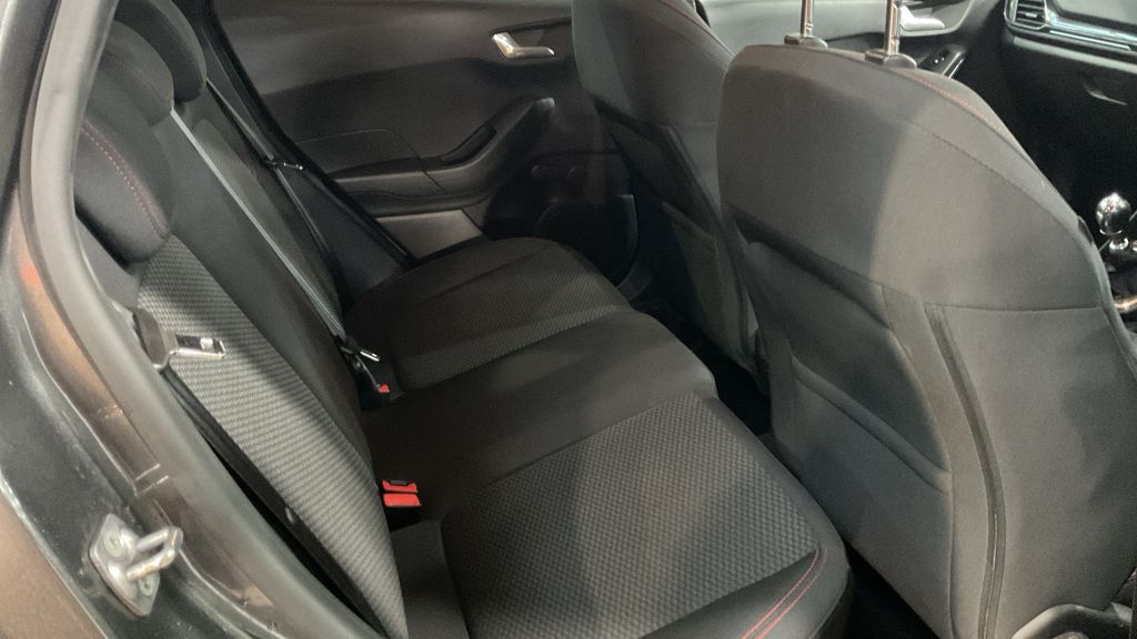 Other features: Air Conditioning – Manual,Centre Console with Two Cupholders and 12V Power Point,Courtesy Light – Front Map Light and Rear – Overhead LED,Door Lever – Chrome Finish,Front Seat – Drivers Manual Height and Fore-Aft Adjustment,Front Seats – Sports Style,Gearshift Knob – Leather-Trimmed with Aluminium Insert,Glovebox – Illuminated,Headliner – Black Woven,Keyless Start with Ford Power Start Button,Leather-Trimmed Handbrake,MyKey,Overhead Console – Sunglasses Holder,Rear Fog Lamps,Rear Seat – 60-40 Split Back and Cushion,Sports Pedals,Steering Column – Rake and Reach Adjustment,Steering Wheel – ST-Line 3-Spoke Leather Trimmed Flat Bottomed,Warning Triangle Storage 17in Alloy Wheels – ST-Line 5-spoke – Rock Metallic,Black Belt Line Finisher,Door Handles – Body Colour,Door Mirrors – Heated – Electric – Integrated Side Indicators – Body Coloured,Electric Windows – Front,Front Bumper – Unique ST-Line,Front Door Threshold Plates – ST-Line,Large Rear Spoiler – Body Colour with Centre High Mounted Stop Light,Quickclear Heated Windscreen,Rear Bumper – Unique ST-Line,ST-Line Side Skirt Body Mouldings – Body Colour,Tyre Repair Kit,Unique ST-Line Upper Grille and Full Bodystyling Kit with ST-Line Wing Badges,Wipers – Standard with 6 Speed Interval Settings Airbags – Driver and Front Passenger,Airbags – Front and Rear Side Curtain,Airbags – Front Side Impact,Anti-Lock Braking System – ABS with Electronic Brake Force Distribution – EBD,Emergency Brake Warning – Automatic Hazard Warning Lights,Enhanced Electronic Stability Control – ESC with Traction Control – Emergency Brake Assist – EBA – Hill Start Assist – HSA and Trailer Sway Control,Ford Easy-Fuel Capless Refuelling System,IPS – Intelligent Protection System,NCAP Pack,Remote Central-Double Locking,Seats – ISOFIX Mounting Provision for Child Seats,Tailgate Wash-Wipe,Thatcham Category 1 Alarm,Trip Computer,Tyre Pressure Monitoring System – TPMS EPAS – Electric Power Assisted Steering,Halogen Projector Headlights with LED Daytime Running Lights,Headlights – Automatic On-Off,Rear Lights – Non-LED,Sports Tuned Suspension,ST-Line Front Fog Lamps with Cornering Lights