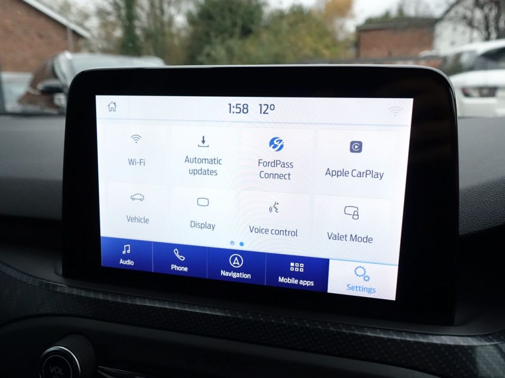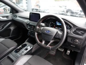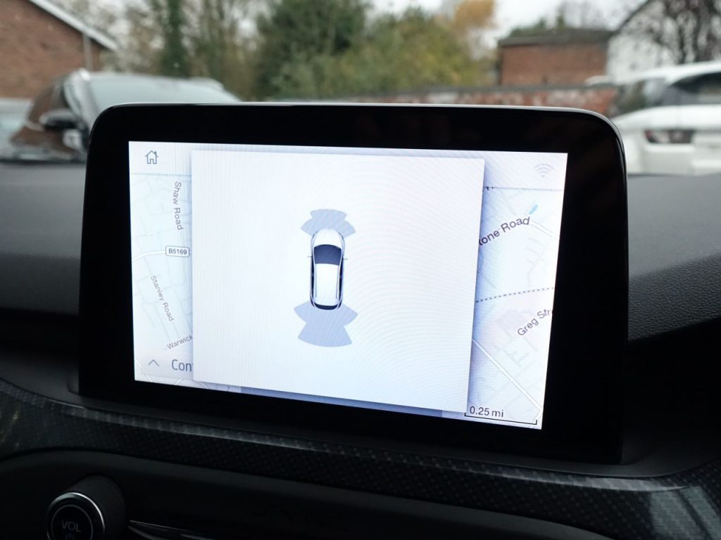 Other features: 2nd Load Floor,Alloy Finish Pedals,Automatic Dimming Rear View Mirror,Dark Headliner,DEATC – Dual-Zone Electronic Automatic Temperature Control,Flat Bottomed Steering Wheel with Red Stitching,Front and Rear Floor Mats with Red Stitching,Front Seat – Drivers Manual Lumbar Support Adjustment,Front Seats – Driver and Passenger Heated Seats,Keyless Start with Ford Power Start Button,MyKey,Paddle Shift,Passenger Seat Manual Height and Lumbar Adjust,Rain Sensitive Windshield Wipers,Rear Centre Headrest,Rear Seats – Auto Fold,Soft Console Knee Pads with Red Stitching,Steering Wheel – 3-Spoke – Leather Trimmed,Steering Wheel – ST-Line Sports Style – Flat Bottom,Unique Door and Instrument Panel Inserts 18in Alloy Wheels – 5×2 Spoke – Matt Black – Machined Finish,Body Colour Bumpers,Door Handles – Body Colour,Door Mirrors – Electrically-operated – Heated – Power-Foldable – Body Colour Housings – Side Indicators – Puddle Lights,Ford Easy Fuel System,Large Rear Spoiler – Body Colour with Centre High Mounted Stop Light,Polished Twin Tailpipe,Quickclear Heated Windscreen,Rear Privacy Glass,Red Brake Calipers,Spare Wheel – Mini Steel,Unique ST-Line Upper and Lower Grille and Full Bodystyling Kit and ST-Line Wing Badges,Windows – Electrically Operated Front and Rear with One Touch Opening and Closing Airbags – Driver and Front Passenger,Airbags – Front and Rear Side Curtain,Airbags – Front Side Impact,Cruise Control with Speed Limiter,Electric Parking Brake,ESC – Electronic Stability Control,Front and Rear Seatbelt Minder,Front Passenger Airbag Deactivation Switch,Lane Keeping Aid with Lane Departure Warning,Parking Sensor – Front and Rear,Post Collision Braking,Pre-Collision Assist with Autonomous Emergency Braking and Pedestrian-Cyclist Detection,Pre-Collision Assist with Pedestrian Detection,Remote Central Locking and Engine Immobiliser,Selectable Drive Mode,Thatcham Category 1 Alarm,Trip Computer,Tyre Pressure Monitoring System B&O PLAY Premium Audio System,Foundry Partial Leather and Salerno Leather – Vinyl Bolster – Ebony with Generic Red Stitching,Halogen Reflector Headlights,Headlights – Automatic On-Off,LED Daytime Running Lights,LED Front Fog Lights with Cornering Function,Magnetic,Sports Tuned Suspension,Wireless Charging