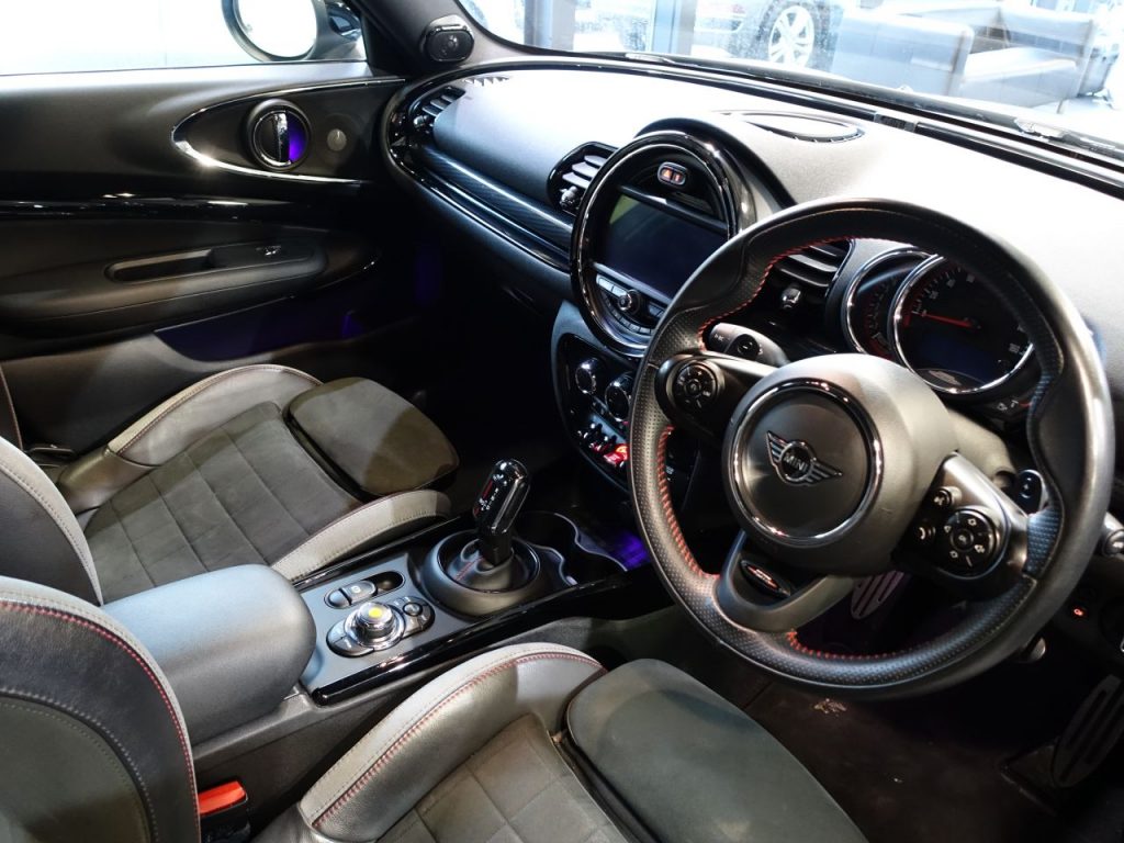 Other features: 4 Lashing Eyes in Luggage Compartment,Anthracite Headlining,Chrome Highlights,Comfort Plus Pack,Cupholders,Door Storage Compartments,Foldable Rear Seats 60-40,Glove Compartment,Instrument Cluster,Interior Lighting,Interior Trim – Piano Black,John Cooper Works Leather Steering Wheel,John Cooper Works Sport Seats,Leather Gearshift Lever and Handbrake Gaiters,LED Reading Lights – Vanity Mirror Lights – Front Foot Well Lights – Spotlights on Front Seats,Mechanical Seat Adjustment,MINI Excitement Pack,Multifunction Controls for Steering Wheel,Pedals – Rubberised Stainless Steel,Split Rear Doors,Start-Stop Toggle including Keyless Go,Steering Column Height and Length Adjustment,Sun Visor with Vanity Mirrors,Tool Kit in Luggage Compartment 18in Alloy Wheels – John Cooper Works Grip Spoke in Black,Bonnet Scoop,Brake Calipers – Red With John Cooper Works Logo,Electric Windows,Fuel Filler Cap in Chrome,Heated Rear Window,Heated Windscreen Washer Jets,John Cooper Works Aerodynamic Kit,John Cooper Works Logo,John Cooper Works Roof Spoiler,Model Logo,Model Logo on Rear Doors,Piano Black Exterior Trim,Radiator Grille – Piano Black Border with Honeycomb Structure in Black Matt,Rear Fog Light,Roof and Mirror Caps – Body-Colour,Security Locking Wheel Bolts,Side Scuttle with MINI John Cooper Works Logo in Black High-Gloss with Red Border,Sun-Heat Protection Glass,Twin Exhaust Tailpipes,White Indicator Lenses 3 Point Seatbelts on all Seats,Active Guard – Automatic Emergency Braking,Airbags,Alarm System,Anti-Lock Braking System – ABS,Auto Drive Away Locking,Comfort Access System,Cruise Control with Brake Function,Dead-Locking Function,Dynamic Brake Lights,Dynamic Stability Control – DSC,Electronic Handbrake,Electronic Vehicle Immobiliser,English Handbook,MINI Driving Modes,On-Board Computer,PDC – Park Distance Control – Rear,Performance Control,Rear ISOFIX,Rear Window Wiper,Torsen Mechanical Limited Slip Differential,Two-Tone Horn,Tyre Pressure Monitoring System 17in Sport Brake,Dinamica-Leather – Carbon Black,Electro-Mechanical Steering with Speed Dependant Steering Assistance,Harman Kardon Hi-Fi System,LED Headlights,Moonwalk Grey,Navigation Plus Pack,Rain Sensor and Automatic Headlight Activation,Rear LED Lights with Union Jack Design,Roof and Mirror Caps – Black,Sport Suspension