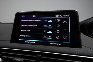 Other features: 1-3 – 2-3 Folding Rear Seat – Magic Flat Modularity with Controls Accessible From the Boot,Aikinite Contrast Stitching to Armrest – Gear Lever Gaiter and Dashboard Facia,Air Conditioning – Automatic Dual Zone Climate Control,Blue Ambient Lighting for Connecting Zone,Blue Ambient Lighting to Front Door Panels – Central Storage and Cupholders,Central Front Armrest with Butterfly-Wing Opening and Illuminated Compartment,Dashboard – Front and Rear Door Panel Finish – Brumeo Fabric,Dashboard Trim – Satin Chrome,Fixing Rings x4 in Load Area,Flocked Front Door Pocket Interior,Flocked Glove Box Interior,Front Central Console with Two Cup-Holders,Front Door Panel Recess Trim – Satin Chrome,Front Interior Light with Reading Spotlights x2 and Rear Interior Light with Timer,Front Optimised Safety Headrests and Rear Retractable Headrests – x3 – Height-Adjustable,Front Windscreen Wiper with Magic Wash Cleaning System,Gear Lever – Satin Chrome,Grab Handles x4 – Retractable – Damped,Heated Front Seats and Driver Seat Multi-P 19in Alloy Wheels – Washington – Diamond Cut,Aluminium Longitudinal Roof Bars,Chrome Front Fog Light Trim,Dark Tinted Rear Side and Tailgate Windows,Door Mirror Shells – Nera Black,Exterior Door Handles – Body-Colour,Front Bumper Scuff Plate in Lion Grey,Front Wing Trim – Black with Chrome Detail,Gloss Black B and C Pillar and Aerodynamic Deflector Trim,Gloss Black Rear Cluster Connecting Strip,Gloss Black Windscreen Trim,GT Line Emblems in Satin Copper – Front Wings and Tailgate,Heated Rear Windscreen with Integrated Antenna,LED Sequential Scrolling Front Indicators,LED Side Indicator Lights Integrated into Door Mirrors,One-Touch Electric Front and Rear Windows with Pinch Protection,Panoramic Opening Glass Roof,Power Folding Door Mirrors – Includes LED Courtesy Approach Lights,Radiator Grille – Chrome Edge Trim with Chequered Design and Black Peugeot Lettering,Rear Bumper Facia – Chrome,Rear Number Plate Lights x2,Rear Spoiler – Body Colour with Stainless Steel Edging Trim,Roof – Black Diamond,Side Window Tr 180 Degree Colour Reversing Camera with Wash System,ABS – Anti-Lock Braking System with REF – Electronic Braking Distribution and AFU – Emergency Braking Assistance,Airbags – Adaptive Driver and Front Passenger,Airbags – Driver and Front Passenger Side,Airbags – Front and Rear Curtain,Alarm,Automatic Door Locking When Moving Off,Automatic Hazard Light Activation Upon Heavy Brake Application,Blue Ambient Lighting to Head-Up Instrument Panel,Body Protectors in Black,DSC – Dynamic Stability Control and ASR – Electronic Anti-Skid System,Electric Child Locking Functionality on Rear Windows and Doors,Electric Parking Brake includes Hill Assist,Electronic Code Immobiliser,Exterior Temperature Indicator with Ice Warning,Front and Rear Parking Sensors,Front Three-Point Retractable Seatbelts – Height-Adjustable with Pre-Tensioners and Force Limiters,Gear Shift Indicator,ISOFIX Child Seat Fittings – x3 – In the Front Passenger and Outer Rear Seats,Lane Departure Warning System,Multifunction Trip Computer,PEUGEOT Open an Door Mirror Mounted LED Peugeot Lion Approach Lights,Electric Power Steering with Reach and Rake Adjustable Steering Column,Full LED Headlights,Headlights Left On Audible Warning,LED Daytime Running Lights Built into the Headlight Unit,LED Foglamps including Static Cornering Function,Nappa Full Grain Leather – Mistral,Nimbus Grey,Rear LED Peugeot Signature Claw Effect Lights – With Daylight Function,Self Levelling Headlights